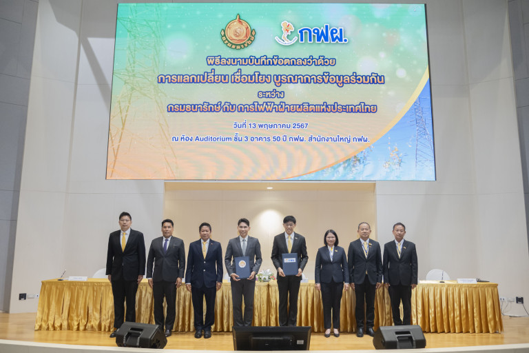 นายเทพรัตน์ เทพพิทักษ์ ผู้ว่าการ กฟผ.กล่าวว่า กฟผ.มีภารกิจพัฒนาระบบโครงข่ายไฟฟ้าให้ครอบคลุมทั่วประเทศ ซึ่งจำเป็นต้องรอนสิทธิที่ดินใต้แนวเขตทั้งที่เป็นที่ดินของเอกชนและที่ดินของรัฐเพื่อความปลอดภัยของประชาชนและระบบโครงข่ายไฟฟ้า โดย กฟผ.มีหน้าที่ในการจ่ายเงินค่าทดแทนการรอนสิทธิด้วยความเป็นธรรม ดังนั้นการบูรณาการข้อมูลราคาประเมินที่ดินและข้อมูลที่ดินราชพัสดุจากระบบออนไลน์ของกรมธนารักษ์กับข้อมูลที่ดินจากระบบจัดการข้อมูลงานจัดกรรมสิทธิ์ที่ดิน (Land AIMS) ของ กฟผ. จะช่วยให้ กฟผ. สามารถดึงข้อมูลราคาประเมินที่ดินและข้อมูลที่ดินราชพัสดุจากฐานข้อมูลของกรมธนารักษ์ได้โดยตรง ทำให้สามารถจ่ายเงินค่าทดแทนแก่เจ้าของที่ดิน ค่าตอบแทนและค่าเช่าการขออนุญาตใช้ที่ดินราชพัสดุแก่กรมธนารักษ์ รวมถึงใช้ในการวางแผนการจ่ายค่าเช่าและภาษีที่ดินและสิ่งปลูกสร้างได้อย่างถูกต้องและรวดเร็วยิ่งขึ้น