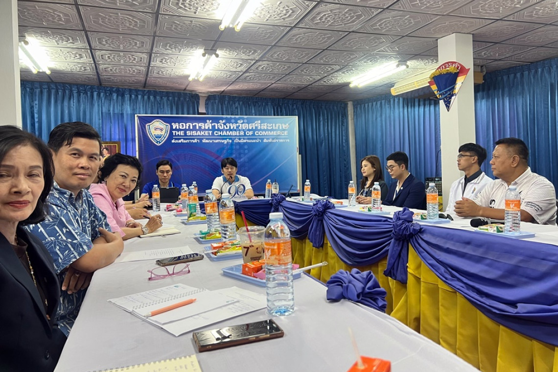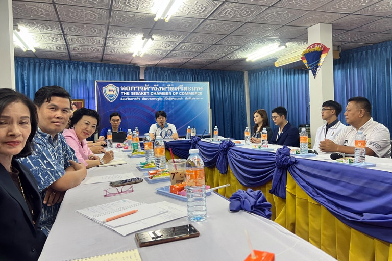 วันที่ 14 พ.ค.67 ที่ห้องประชุมหอการค้าศรีสะเกษ 131 ถ.ปลัดมณฑล นายรัฐวิทย์ อังคสกุลเกียรติ ประธานหอการค้าจังหวัดศรีสะเกษ ได้เป็นประธานการประชุมหน่วยงานภาคเอกชน โดยมี นายบุณยเกียรติ ทวีสุขศิริ เลขาธิการหอการค้า นายวรโชติ เจริญประเสริฐ ประธาน YEC ศรีสะเกษ พร้อมด้วย นายยุทธนา พันธ์ปรีชา ประธานชมรมธนาคารจังหวัดศรีสะเกษ ดร.กัลยาณี ธรรมจารีย์ นายกสมาคมส่งเสริมเครือข่ายการท่องเที่ยวศรีสะเกษ นายพงษ์พัฒน์ ไตรพิพัฒน์ ประธานสภาอุตสาหกรรมท่องเที่ยวศรีสะเกษ นายสุกฤษ ดวนสูง ผู้แทนสภาเกษตรกรศรีสะเกษ ผู้แทนสภาอุตสาหกรรมจังหวัดศรีสะเกษ ผู้แทนสภาวัฒนธรรมจังหวัดศรีสะเกษผู้แทนสมาคมธุรกิจการท่องเที่ยวศรีสะเกษ ผู้อำนวยการโรงพยาบาลพริ้นซ์ ศรีสะเกษ ผู้แทนสมาคมกีฬาแห่งจังหวัดศรีสะเกษ บริษัทประชารัฐรักสามัคคีศรีสะเกษ (วิสาหกิจเพื่อสังคม) นาย กอล์ฟจากเซิ้งไทบ้าน สตูดิโอ คณะกรรมการหอการค้าและผู้เกี่ยวข้องร่วมประชุมปรึกษาหารือ