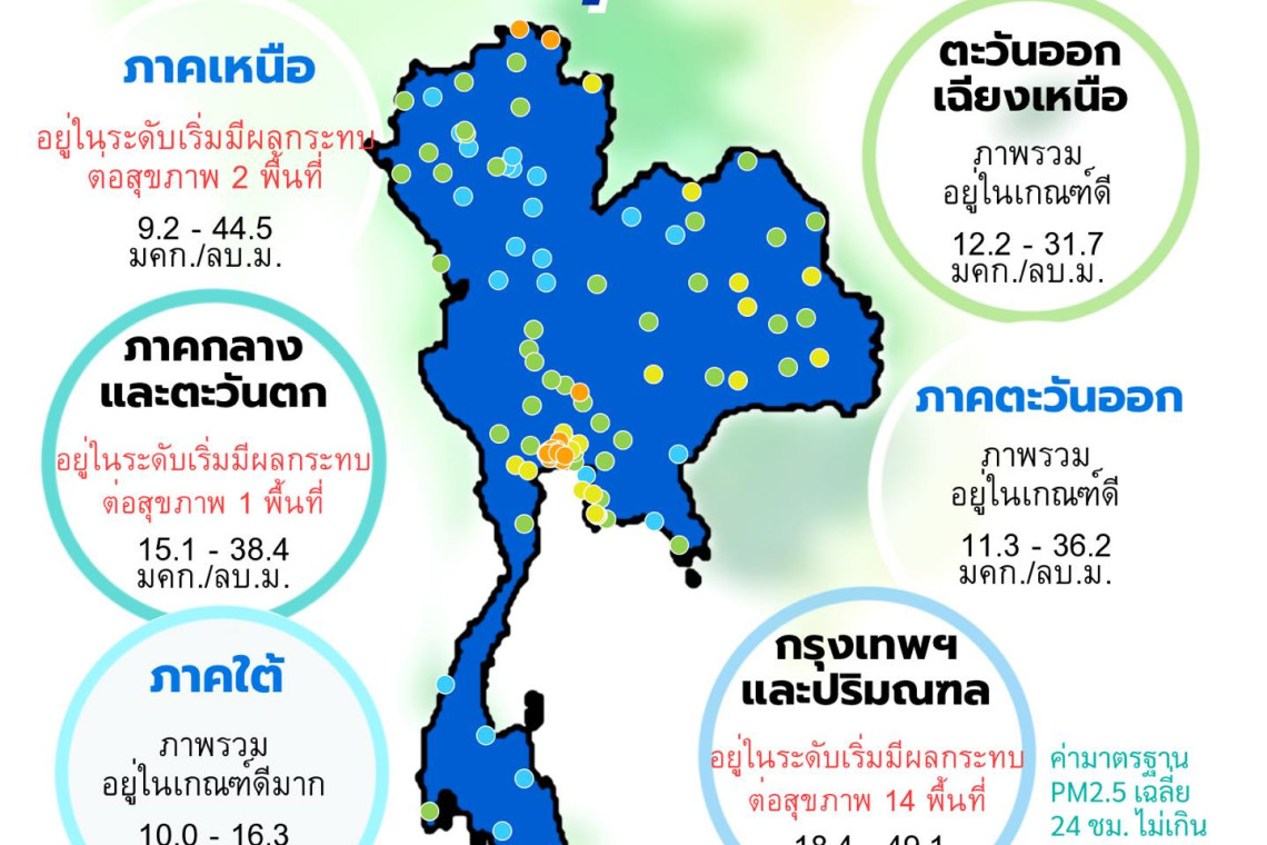 ภาคตะวันออกเฉียงเหนือ ภาพรวมอยู่ในเกณฑ์ดี ตรวจวัดได้ 12.2 - 31.7 มคก./ลบ.ม.