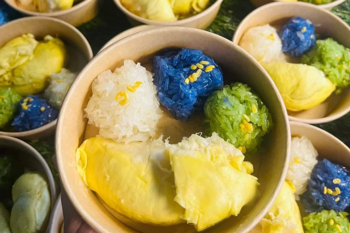 นางสาวอลิษา พันธุโยร์ หรือน้องฝน  เจ้าของร้าน บอกว่า ทางร้านจะใช้เนื้อล้วนๆ ประมาณ 30 กิโลกรัม (หรือ 100 กิโลกรัมทั้งลูก ข้าวเหนียวก็ประมาณ 30 กิโลกรัม  วันละ 200 ชุดขึ้นไป  ทุเรียนที่ใช้เป็นทุเรียนจากจันทบุรีซึ่งเป็นของป้า  จะใช้เป็นทุเรียนหมอนทองที่สุก  ราคาขายก็ถือว่าอยู่ได้ด้วยลูกค้าก็จับต้องได้เราก็อยู่ได้ด้วย  ขายมา 1 อาทิตย์แล้วโดยเฉพาะหน้าทุเรียนจะขายเป็นประจำทุกปี คิดว่าลูกค้าติดใจในน้ำกะทิพร้อมใส่เนื้อทุเรียนโดยทางร้านจะให้ลูกค้า 2 แบบทั้งแบบใส่เนื้อทุเรียนไปในน้ำกะทิและแบบไม่ใส่  ราคาขาย 60 บาท จะเริ่มขายตั้งแต่ 4 โมงเย็นจนถึง 4 ทุ่ม ขายทุกวัน เนื้อทุเรียนล้วน  ขายขีดละ 59 บาท (แต่ขึ้นอยู่ที่ราคาของทุเรียนแต่ละวันด้วย)