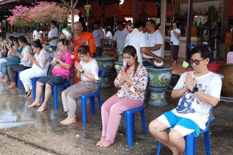 โดยจะมีพิธีอาบน้ำมนต์แก้ปีชง เสริมดวง เสริมบารมี จากหลวงพ่อโชค ซึ่งท่านได้นั่ง อธิษฐานจิตใน อัญเชิญครูบาอาจารย์ ทำน้ำมนต์ด้วยตัวท่านเอง ซึ่งในแต่ละปีมีศิษย์ลูกศิษย์ และประชาชนจำนวนมาก มาขอรับบัตรคิว เพื่อให้หลวงพ่อโชค ใช้บาตรตักน้ำมนต์ รดหัวและตัว เนื่องจากเชื่อว่าจะสามารถช่วยแก้ปีชง ให้ร้ายกลายเป็นดี สิ่งอัปมงคลจะไหลไปกับสายน้ำ เพื่อรอรับสิ่งดีๆ ให้กับตัวเรา