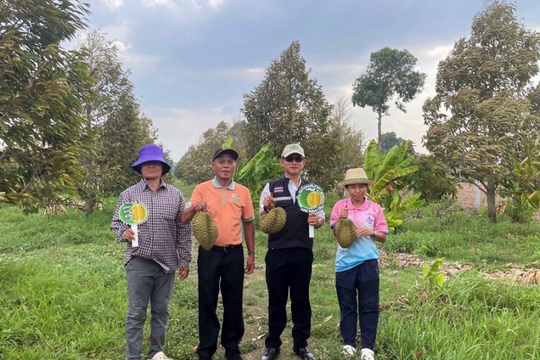 และในครั้งนี้นายนพดล ผุดผ่อง เกษตรจังหวัดยโสธร ได้พูดคุยแลกเปลี่ยนประสบการณ์ พร้อมทั้งให้ขวัญและกำลังใจในการทำสวนทุเรียน และให้คำแนะนำในการจัดการศัตรูพืช ซึ่งสำนักงานเกษตรอำเภอมหาชนะชัยได้สนับสนุนหัวเชื้อราไตรคลอเดอร์มาเพื่อใช้ในการป้องกันโรคทุเรียนที่เกิดจากเชื้อรา และในปี 2567 ได้มีโครงการสนับสนุนระบบน้ำในแปลงทุเรียนตามค่าวิเคราะห์ความต้องการน้ำของทุเรียนให้กับเกษตรกรด้วย นอกจากนี้จะได้จัดให้มีการศึกษาดูงานเพื่อพบปะเครือข่ายผู้ปลูกสวนทุเรียนในจังหวัดยโสธรต่อไปที่สวนทรายทอง บ้านพลไว ตำบลคูเมืองอำเภอมหาชนะชัย จังหวัดยโสธร
