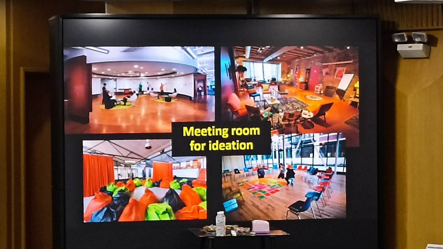 การวิจัยของ มหาวิทยาลัย Stanford  มี 4 รูปแบบของห้องประชุมที่จะออกไอเดีย ได้แก่ โต๊ะประชุมแบบปกติ ,เป็นโซฟา, dance floor  และแบบ sandbox คือมีถุงทรายให้นั่งเล่นได้ ซึ่งพบว่า dance floor ทำให้เกิดไอเดียมากที่สุด
