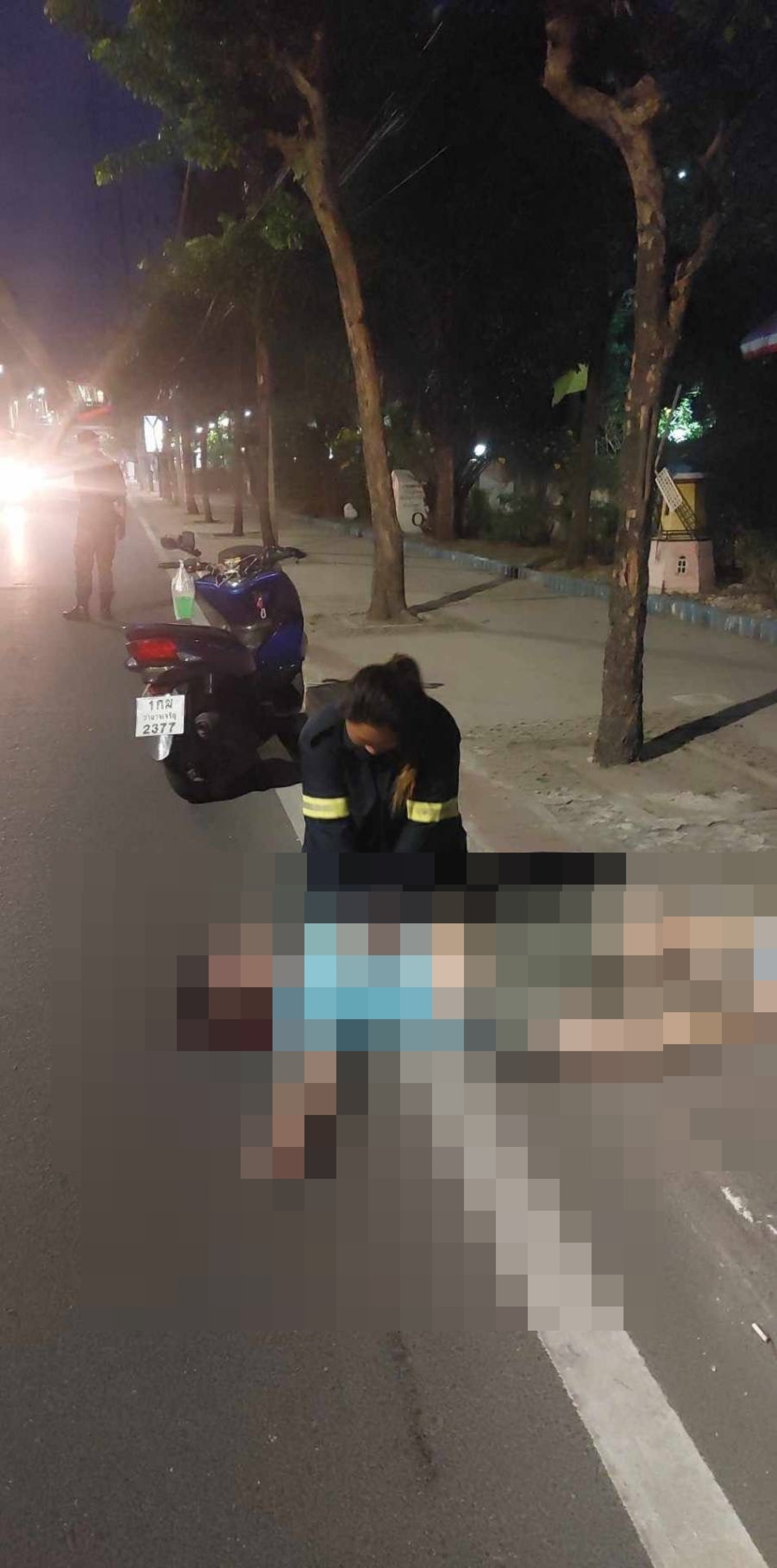 จากการ ตรวจสอบที่เกิดเหตุบริเวณช่องจราจรซ้ายสุดใกล้กับเสาไฟฟ้าพบผู้เสียชีวิตเป็นชายไทยยังไม่ทราบชื่ออายุประมาณ 40 - 45 ปี สภาพศพ บริเวณศีรษะ แตกเสียเลือดจำนวนมาก แต่งกายใส่ เสื้อคอปกสีฟ้ากางเกงขาสั้นสีเทาไม่สวมหมวกกันน็อคและมีชิ้นส่วนตกอยู่ไกล้กันรถจักรยานยนต์ยี่ห้อฮอนด้า รุ่นเวฟ สีขาวแดงสภาพรถใหม่ ยังไม่ได้ป้ายทะเบียน ด้านหน้ารถมีรอยชนกับเสาไฟฟ้า ต่อมาเจ้าหน้าที่ได้ดูเอกสารที่ใต้เบาะรถ พบว่ารถจยย. คันที่เกิดเหตุ ออกมาได้เพียง 8 วัน