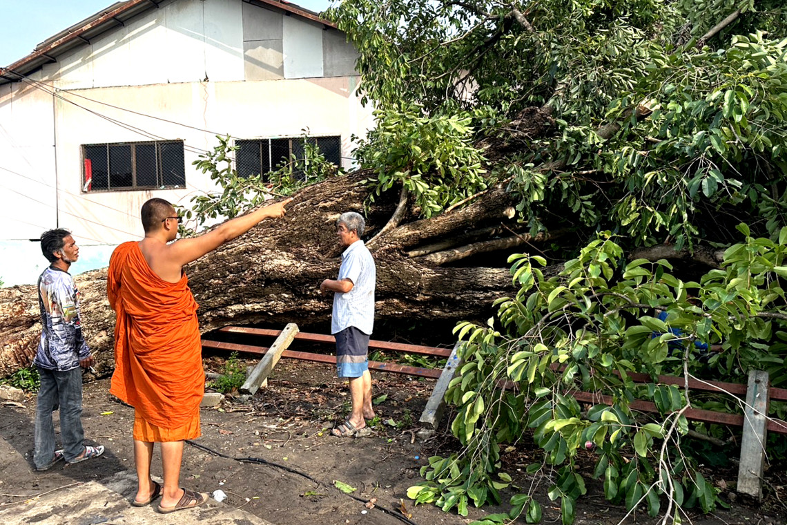 วันที่ 18 พ.ค.67 ผู้สื่อข่าวรายงานว่า เหตุการพายุฤดูร้อนพัดถล่มในพื้นที่หมู่ที่5ตำบลเขาสมอคอน อำเภอท่าวุ้ง จังหวัดลพบุรี เกิดขึ้นเมื่อช่วงค่ำ ของเมื่อวานที่ผ่าน ได้เกิดพายุฝน และลมพัดรุนแรงนานกว่าครึ่งชั่วโมง ทำให้ต้นหว้าอายุกว่า 70 ปี ซึ่งเป็นต้นไม้ใหญ่ของวัดถ้ำตะโกพุทธโสภา ได้ถอนรากยกต้นขึ้นมาล้มทับอาคารเรียน ของโรงเรียนสุวัณบดี ซึ่งเป็นโรงเรียนระดับมัธยมศึกษาเพื่อเด็กด้อยโอกาส แบละเด็กกำพร้าของวัดถ้ำตะโกพุทธโสภา มีนักเรียนเรียนอยู่กว่า 200 คน คนต้นไม้ใหญ่โค่นลงมาทับอาคารเรียน จำนวน 3 หลัง ประกอบด้วย ห้องพยาบาลได้รับควสามเสียหายหนักสุด หลังคาพังลงมา นอกจากนี้ยังมีห้องคอมพิวเตอร์ และห้องเรียนนักเรียนชั้น ม.1 ได้รับความเสียหายอย่างหนัก ที่สำคัญในวันเปิดเรียนวันจันทร์นักเรียนจะไม่สามารถใช้ห้องเรียน และห้องคอมพิวเตอร์ได้