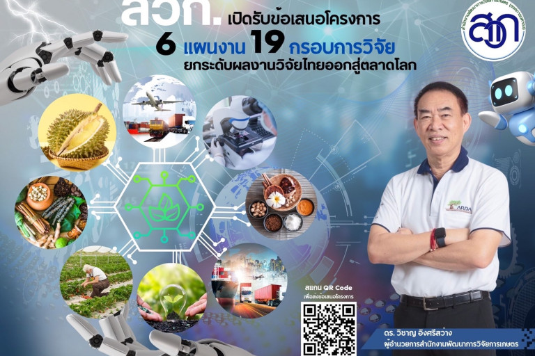 สำนักงานพัฒนาการวิจัยการเกษตร (องค์การมหาชน) หรือ สวก. เปิดรับข้อเสนอโครงการจากนักวิจัยและผู้สนใจที่ประสงค์ขอรับสนับสนุนทุนวิจัย ประจำปีงบประมาณ 2568 ภายใต้ 6 แผนงานวิจัยเพื่อยกระดับและสร้างความเข้มแข็งภาคการเกษตรไทย ตลอดจนเป็นการกระตุ้นให้เกิดการนำนวัตกรรมและเทคโนโลยีสมัยใหม่มาพัฒนาต่อยอดสร้างผลงานวิจัยด้านการเกษตรที่ช่วยลดต้นทุน พัฒนาคุณภาพผลผลิต สร้างผลิตภัณฑ์ที่แตกต่างตอบสนองความต้องการที่หลากหลาย อันจะนำไปสู่การสร้างมูลค่าเพิ่มให้กับสินค้าเกษตรไทยอย่างยั่งยืน
