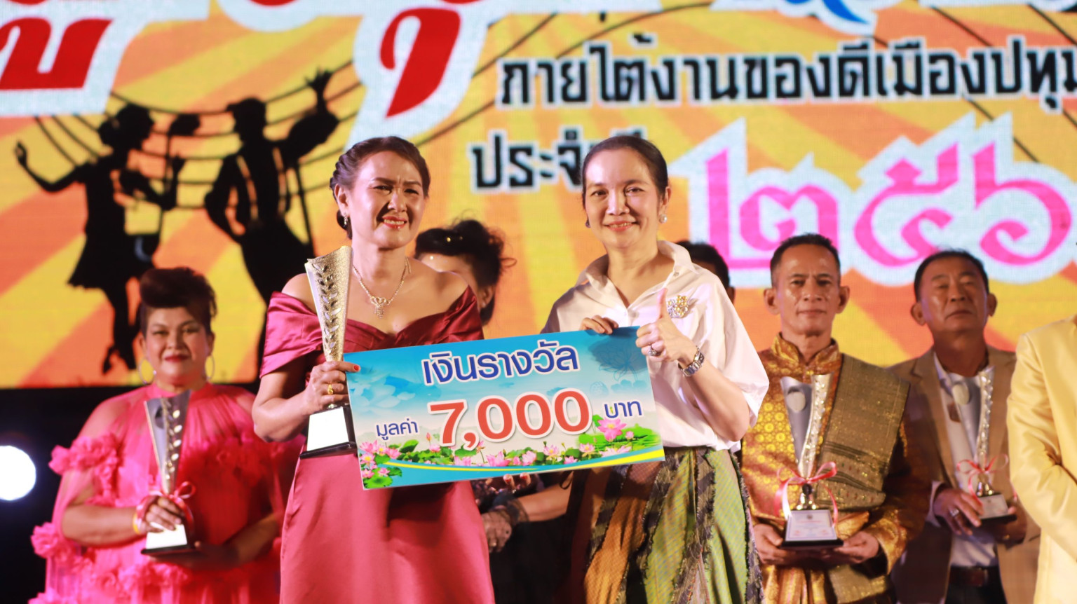 อำเภอเมืองปทุมธานี คว้ารางวัลชนะเลิศ การประกวดร้องเพลงลูกทุ่งท้องที่ ทั้งประเภทชายและหญิง ในงานกาชาดและของดีเมืองปทุมธานี
