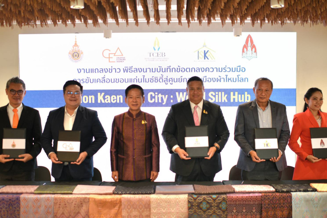 วันที่ 21 พฤษภาคม 2567 ผู้สื่อข่าวรายงาน ว่า สำนักงานส่งเสริมการจัดประชุมและนิทรรศการ (องค์การมหาชน) หรือทีเส็บจับมือภาคี 4 องค์กร พร้อมใจกันยกระดับผลิตภัณฑ์และความสามารถในการบริหารของชุมชน เพื่อผลักดันขอนแก่นเป็นประตูผ้าไหมไทยสู่ตลาดโลก พร้อมนำผ้าไหมไทยสู่เวทีโลกที่ฝรั่งเศสและออสเตรเลีย โดยภาคีดังกล่าว ประกอบด้วย สำนักงานส่งเสริมเศรษฐกิจสร้างสรรค์ (องค์การมหาชน) สมาคมไหมไทยและสิ่งทอขอนแก่น มหาวิทยาลัยขอนแก่น มหาวิทยาลัยเทคโนโลยีราชมงคลอีสาน และทีเส็บ ซึ่งจะใช้ความชำนาญที่แตกต่างกันมาส่งเสริมผู้ประกอบการไหมไทยได้อย่างครบกระบวนการ