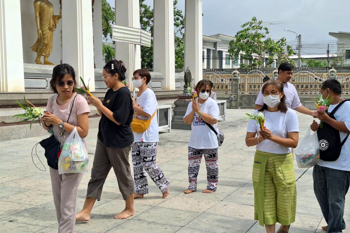 วันที่ 22 พ.ค.66 ผู้สื่อข่าวรายงานว่า พุทธศาสนิกชนจำนวนมาก ร่วมทำบุญตักบาตร ฟังพระธรรมเทศนา และเวียนเทียน เนื่องในวันวิสาขบูชา ณ วัดบัวแก้วศรัทธาธรรม เขตคลองสามวา กรุงเทพฯ