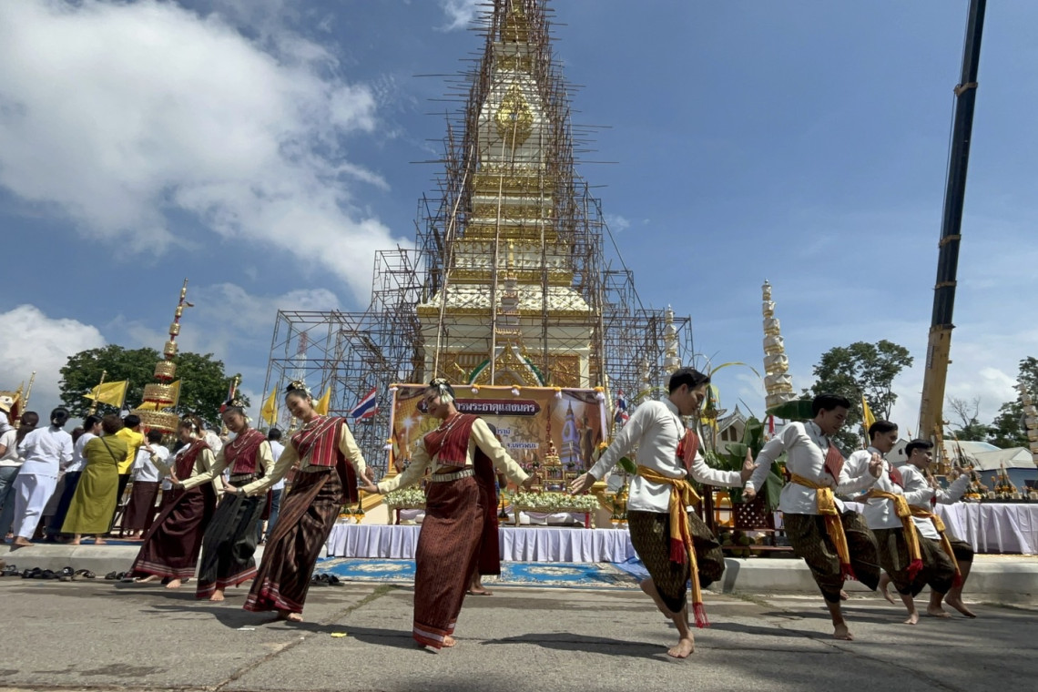 นครพนม เชื่อปาฏิหาริย์พุทธบารมี ถือฤกษ์วิสาขบูชา ปีที่สอง ทำพิธียกยอดฉัตรทองคำฝังเพชร มูลค่ากว่า 4 ล้านบาท ประดับยอดองค์พระธาตุแสงนคร วัดเจ้าคุณเพชร วัดสว่างสุวรรณาราม เกิดปาฏิหาริย์ พระอาทิตย์ทรงกลด เชื่อเป็นแสงธรรม หนุนเมืองนครพนม เป็นถิ่นท่องเที่ยวทางธรรม ส่งผลดีต่อการพัฒนาเศรษฐกิจ การค้า การท่องเที่ยว
