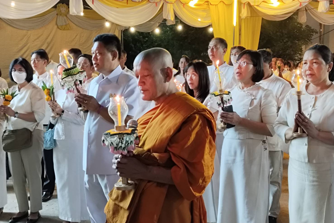 พุทธศาสนิกชนชาวชัยนาทจำนวนมาก ร่วมเวียนเทียนรอบเจดีย์ศรีไชยนาท วัดพระบรมธาตุวรวิหาร แม้จะมีฝนโปรยปราย