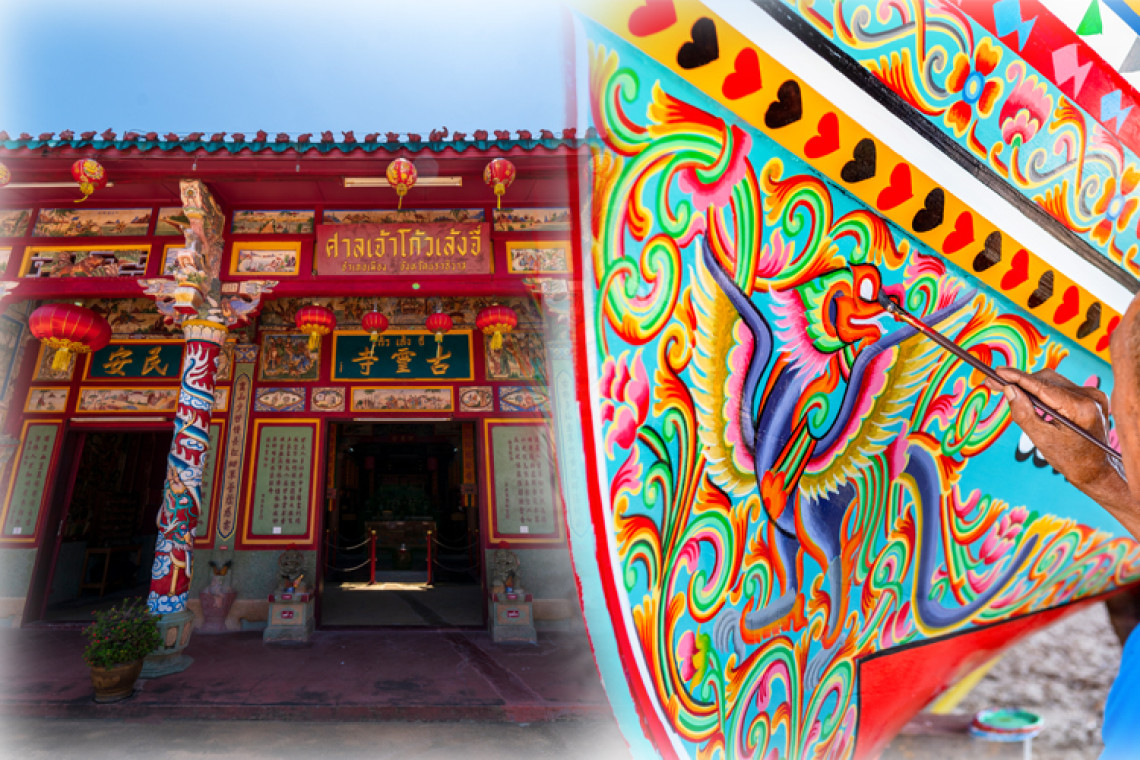 แวะชม ศาลเจ้าโกวเล้งกี่ ศาลเจ้าแห่งแรกของจังหวัดนราธิวาส และมีความแต่กต่างจากที่อื่น คือ มีเจ้าที่หรือเจ้าศาลเป็นหัวมังกรคาบแก้ว ตั้งอยู่ในอำเภอเมือง ตัวอาคารสร้างแบบสถาปัตยกรรมจีนโบราณ ภายในศาลยังประดิษฐานรูปหล่อของหลวงปู่ทวดเหยียบน้ำทะเลจืด วัดช้างให้ และมีรูปปั้นเทพเจ้าให้สักการะมากมาย เช่น พระยูไล พระอรหันต์จี้กง เทพเจ้ากวนอู เจ้าพ่อเสือ องค์เห้งเจีย เจ้าแม่กวนอิม ตามฝาผนังมีภาพปูนปั้นฝีมือช่างชาวจีนในสมัยก่อน บอกเล่าเรื่องราวขนบธรรมเนียมประเพณีและวัฒนธรรมจีนตามตำนานพงศาวดารจีน มีความวิจิตรงดงาม รวมทั้งเสามังกรปูนปั้นซึ่งเป็นงานฝีมือที่หาชมได้ยาก เปิดทุกวัน เวลา 08.00-18.00 น.