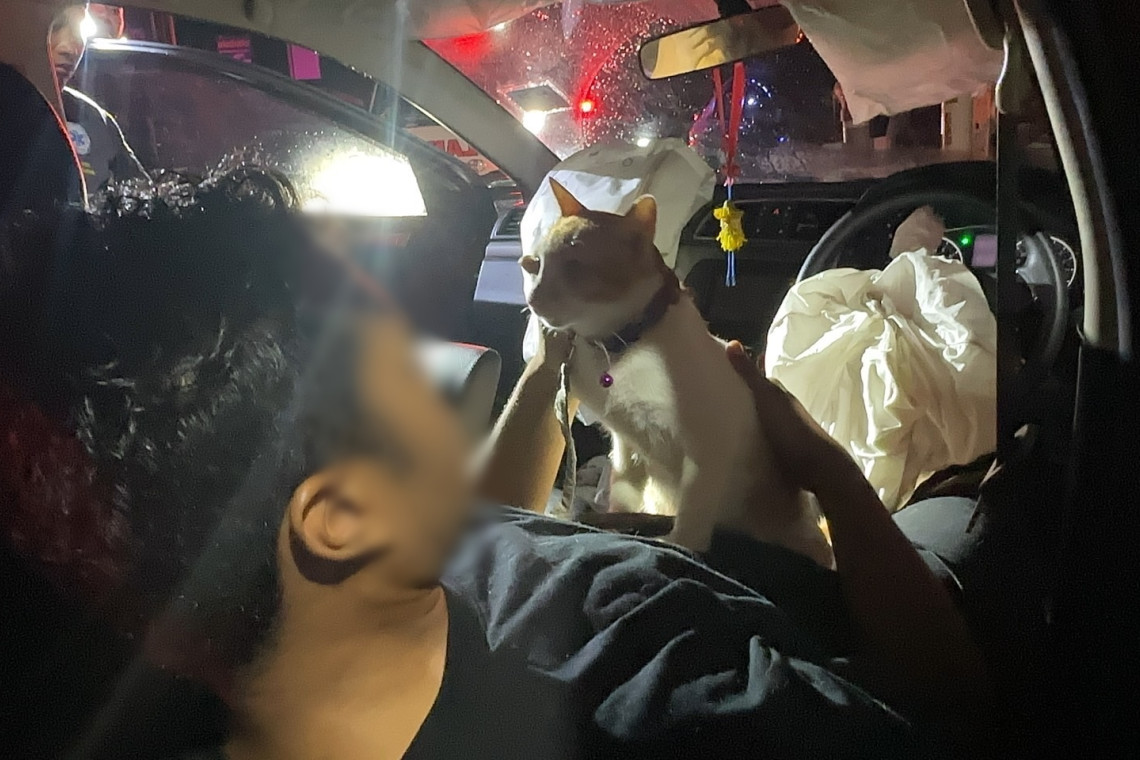 ที่เกิดเหตุพบรถยนต์เก๋ง ยี่ห้อซูซูกิ เซียส สีดำ หมายเลขทะเบียน งท xxxx ชลบุรี เสียหลักชนคาอยู่กับเสาไฟฟ้าแรงสูง จนได้รับความเสียหาย ภายในรถมี MR.JASON อายุ 27 ปี ชาวฮ่องกง ไม่สะทกสะท้าน กับเหตุการณ์ที่เกิดขึ้น ยังคงนอนกอด สุนัข และแมว หลับฝันหวานอยู่ในรถ เจ้าหน้าที่ ชาวบ้านพยายามช่วยกันเรียกเท่าไหร่ก็ไม่มีทีท่าจะตื่น ใช้เวลากว่า 20 นาที เจ้าหน้าที่ตำรวจและเจ้าหน้าที่กู้ภัยฯจึงต้องใช้วิธีช่วยกันลากตัวลงจากรถด้วยความทุลักทุเล ในขณะเจ้าต้วส่งยิ้มหวานอารมณ์ดี ให้กับทุกคนราวกับไม่มีอะไรเกิดขึ้น