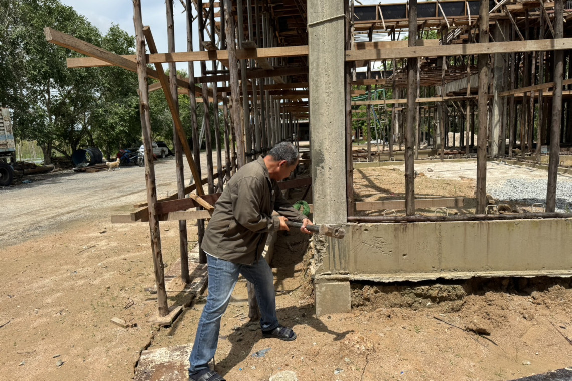 เมื่อไปถึงสถานที่ก่อสร้างที่มีปัญหา พบกับนายชูชาติ เจ้าของอาคารสี่ชั้น ได้พาไปดูบริเวณก่อสร้างอาคารดังกล่าว พบว่ากำลังก่อสร้างโครงสร้างอาคารกว้าง 8 เมตร ยาว 12 เมตร โดยมีการเทคาน ตอม่อ และ มีการเทเป็นเสาปูนขึ้นมาแล้ว 1 ชั้น