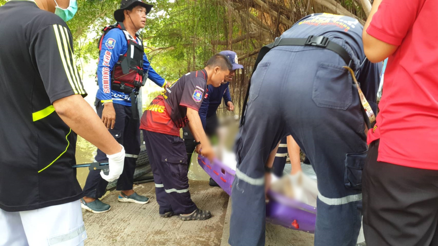 เมื่อไปถึงที่เกิดเหตุ ซึ่งอยู่ห่างจากจุดที่จมหายไปประมาณ 1 กิโลเมตร มีชาวบ้านและญาติผู้เสียชีวิตมายืนรอกันจำนวนมาก เข้าไปตรวจสอบ พบเจ้าหน้าที่กู้ภัยสว่างพรกุศล ได้กู้ศพขึ้นมาจากกลางแม่น้ำขึ้นเรือมาเข้าฝั่ง สภาพศพตัวซีดใส่เสืัอสีแดงกางเกงขาสั้นสีน้ำตาล ตรวจสอบเบื้องต้นไม่พบบาดแผลตามร่างกาย เจ้าหน้าที่จึงเตรียมนำส่งชันสูตรที่ รพ.ระยองแต่ภรรยาผู้เสียชีวิตและบุตรสาว พร้อมด้วยญาติ เข้ามาดูก็ถึงกับร้องไห้ออกมา เป็นที่เวทนาอย่างมาก