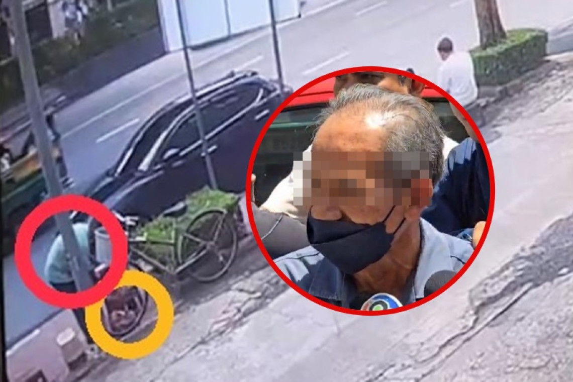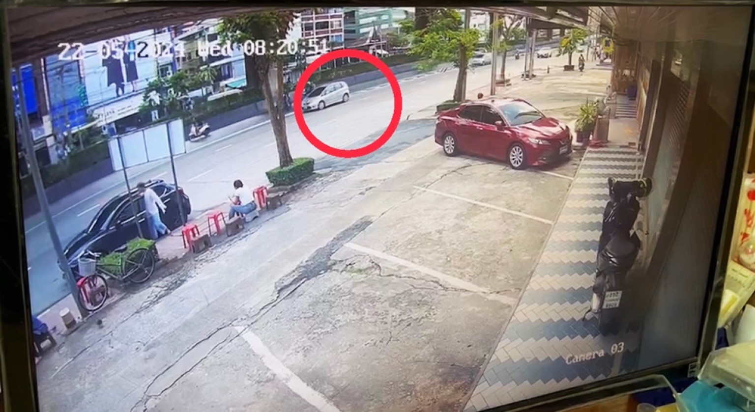 เวลา 8:22:16 จะเห็นว่า ลุงขับรถแท็กซี่เหมือนจะเห็นว่ามีของตกอยู่กลางถนน จึงเดินจากบริเวณท้ายรถแล้วข้ามถนน เพื่อมุ่งหน้าไปเก็บของที่อยู่บริเวณกลางถนน โดยลุงอาศัยจังหวะที่รถโล่งวิ่งไปเพื่อหยิบของ แล้วเดินกลับมาที่ข้างถนน