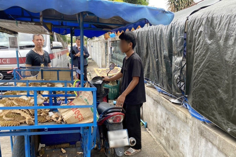 วันที่ 28 พ.ค.67 ที่ บก.ตม.1 พล.ต.ต.ประสาธน์ เขมะประสิทธิ์ ผบก.ตม.1,พ.ต.อ.กีรติศักดิ์ ก้องเกียรติศิริ รอง ผบก.ฯ ปรก.บก.ตม.1,พ.ต.อ.กาจภน ปฐมัง ผกก.สืบสวน บก.ตม.1 ได้สั่งการให้ พ.ต.ท.พรชัย สุขเจริญ รอง ผกก.สืบสวน บก.ตม.1 พ.ต.ต.สวรรค์ ราชพิทักษ์, พ.ต.ต.เจตน์ ยุทธโยธิน สว.กก.สืบสวน บก.ตม.1 พร้อมกำลังเจ้าหน้าที่ชุดสืบสวน ร่วมกับเจ้าหน้าที่สำนักงานจัดหางานกรุงเทพมหานคร พื้นที่ 4 ภายใต้อำนวยการของ น.ส.อัญฒิกา ทองเปลว รรท. ผอ.จัดหางานกรุงเทพมหานครพื้นที่ 4 ลงพื้นที่กวาดล้างกลุ่มคนต่างด้าวลักลอบเร่ขายสินค้าผลไม้ตามฤดูกาล โดยเฉพาะทุเรียน ซึ่งกำลังเป็นผลไม้ที่นิยมในขณะนี้ โดยได้ลงพื้นที่ไล่ตรวจสอบตลอดแนวถนนนวมินทร์ เขตคันนายาว ตลอดจนถึงเขตบึงกุ่ม โดยพ่อค้าแม่ค้าต่างด้าวต่างพยายามซิ่งซาเล้งหนี แต่ไปไม่รอด โดยสามารถติดตามจับกุมตัวกลับมาได้ 3 ราย (รถซาเล้ง 2 คัน แผงค้า 1 แผง) และหนีไปได้ 1 รายก่อนที่เจ้าหน้าที่ตำรวจ กก.สืบสวน บก.ตม.1 และจัดหางานพื้นที่ 4 จะขยายผลตามไปจับกุมตัวได้ที่บ้านเช่าในละแวกดังกล่าว จนครบ 4 ราย แบ่งเป็นสัญชาติลาว 1 ราย และสัญชาติเวียดนาม 3 ราย และยังพบว่ามีการสต๊อกขนุน และผลไม้อื่น ไว้ที่บ้าน เพื่อเตรียมจะนำขึ้นรถซาเล้งและนำออกไปขายในวันต่อไป