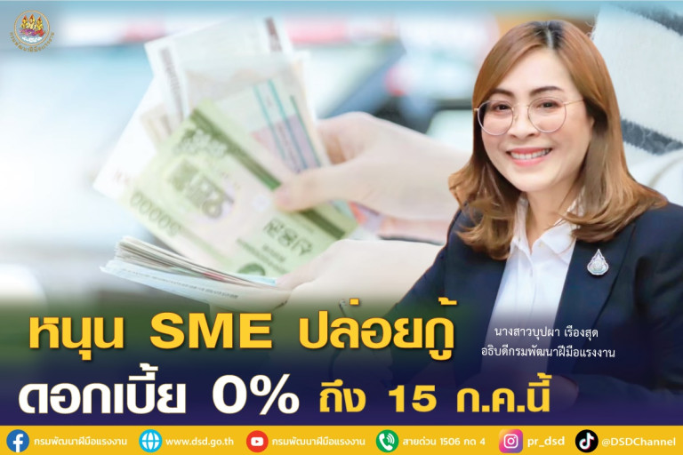 อธิบดีบุปผาเผยกรมพัฒนาฝีมือแรงงาน กระทรวงแรงงานมีเงินกองทุนพัฒนาฝีมือแรงงานให้สถานประกอบกิจการ SME กู้ยืม แบบไม่มีดอกเบี้ย เพื่อส่งเสริมการฝึกอบรม และทดสอบมาตรฐานฝีมือแรงงานให้แก่ลูกจ้างของตนเอง วงเงินสูงสุดถึง 1 ล้านบาท ยื่นคำขอกู้ได้ถึง 15 ก.ค.67 เท่านั้น