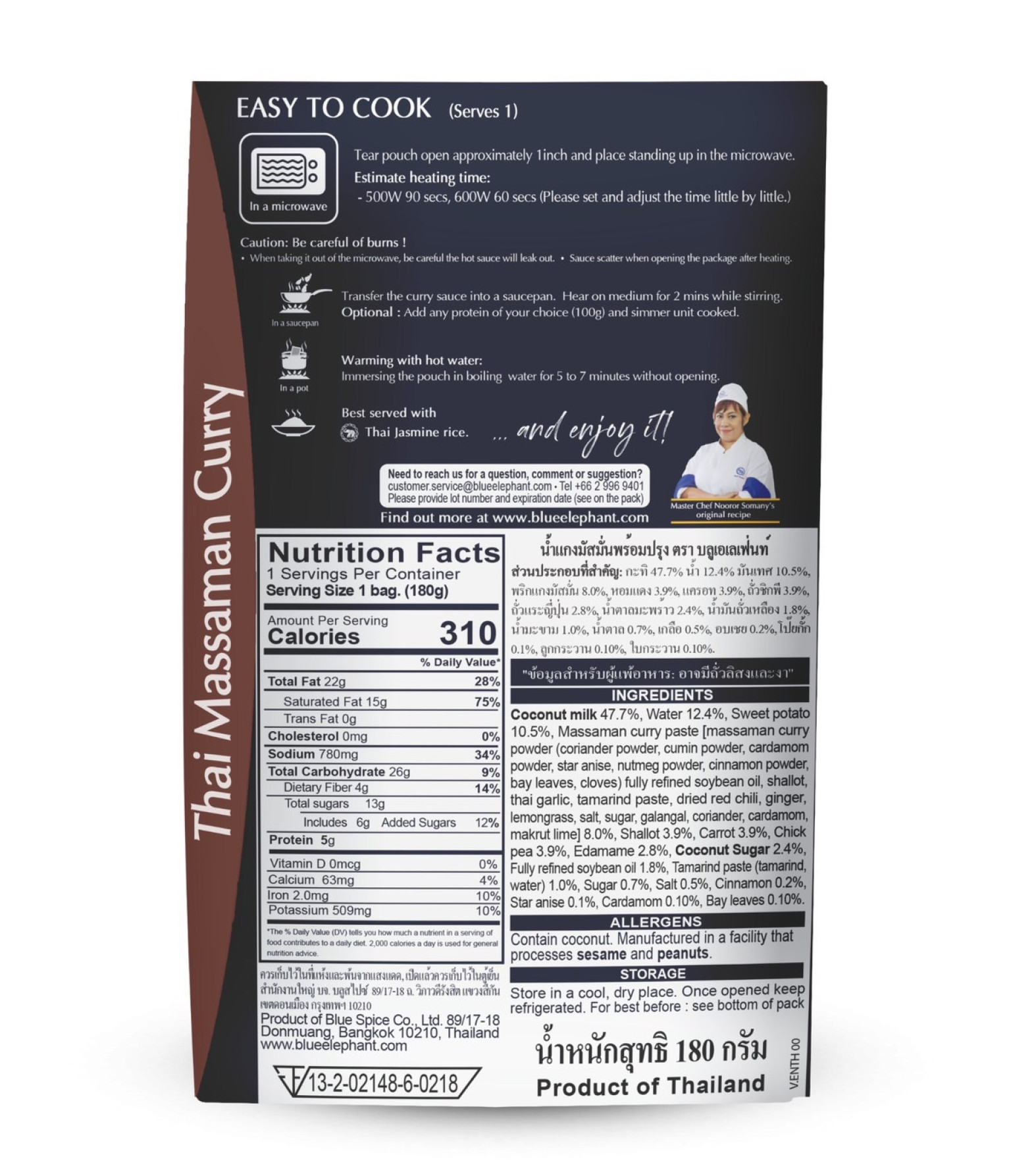 เมนูแกงพร้อมรับประทาน ได้แก่ แกงเขียวหวาน แกงกะหรี่ และแกงมัสมั่นในตำนานของมาสเตอร์เชฟนูรอ พร้อมด้วยตัวเลือกโปรตีนจากพืชเพิ่มเติม ซึ่งกลุ่มผลิตภัณฑ์ระดับพรีเมียมใหม่ล่าสุดนี้ไม่เพียงแต่ได้รับการออกแบบให้เหมาะสำหรับใช้กับไมโครเวฟและพร้อมรับประทานเท่านั้น แต่ยังมอบอาหารที่มีคุณค่าทางโภชนาการสำหรับผู้รับประทานอาหารวีแกน โดยมีส่วนผสมโปรตีนจากพืช เช่น ถั่วลูกไก่และถั่วแระญี่ปุ่น และยังคงรสชาติไทยแท้ 100% และนับเป็นครั้งแรกที่ บลู เอเลเฟ่นท์ เปิดตัวบรรจุภัณฑ์สำหรับรับประทาน 1 เสิร์ฟ เพื่อให้สอดคล้องกับวิวัฒนาการของรูปแบบการบริโภค เพียงนำเข้าไมโครเวฟ 1 นาที ก็สามารถเพลิดเพลินกับมื้ออาหารที่ราดบนข้าวหอมมะลิร้อนๆ ซึ่งผลิตภัณฑ์ใหม่ล่าสุดเหล่านี้ ส่งผลให้ผลิตภัณฑ์ปัจจุบันของบลู สไปซ์ มีมากกว่า 100 รายการ และเป็นผู้ผลิต ผลิตภัณฑ์ที่ครอบคลุมเครื่องปรุงอาหารไทยมากที่สุดในประเทศไทย ซึ่งบลู สไปซ์ มีภารกิจที่มุ่งมั่นที่พัฒนาผลิตภัณฑ์อย่างต่อเนื่อง เพื่อให้แน่ใจว่าสามารถมอบผลิตภัณฑ์ที่มีคุณภาพและหลากหลายออกาสู่ตลาดเสมอ”