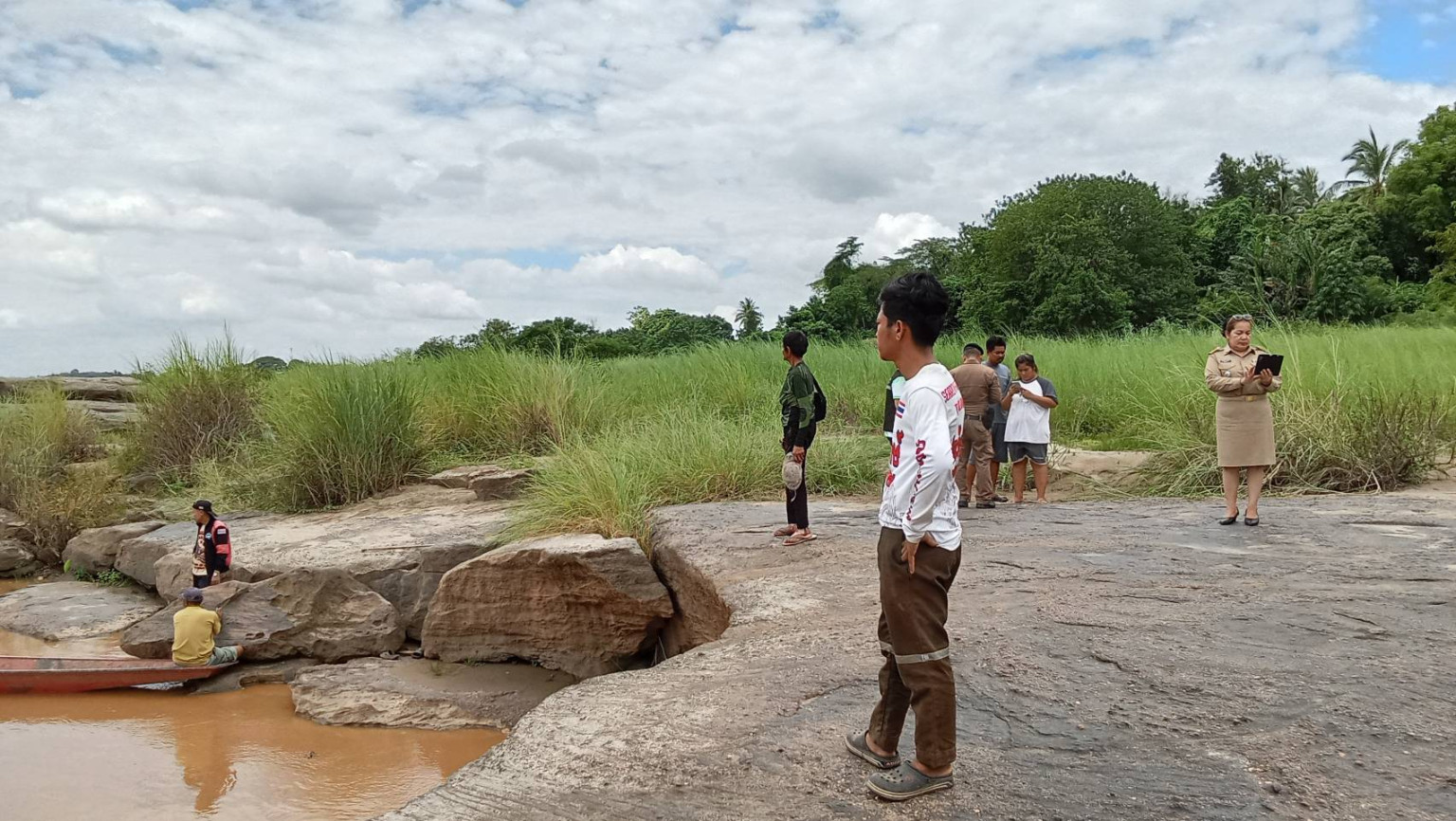 ผู้สื่อข่าวรายงาน ว่า เมื่อวันที่ 29 พ.ค. 2567 ที่ ริมฝั่งแม่น้ำโขงวัดหินหมากเป้ง ต.พระพุทธบาท อ.ศรีเชียงใหม่ จ.หนองคาย จนท.ฝ่ายปกครองอำเภอศรีเชียงใหม่ พร้อมตำรวจน้ำศรีเชียงใหม่ , ตำรวจ สภ.ศรีเชียงใหม่ , ป้องกันและบรรเทาสาธารณภัย อบต.พระพุทธบาท และกู้ภัยประจักษ์หนองคาย ร่วมกันค้นหาร่างนายนิรันด์ จันทะคัต อายุ 67 ปี อยู่บ้านเลขที่อยู่ 232 หมู่ 3 บ้านโคกซวก ต.พระพุทธบาท อ.ศรีเชียงใหม่ ที่กระโดดลงแม่น้ำโขงร่างจมหาย เมื่อเวลาประมาณ 09.00 น. ที่บริเวณโขดหินด้านหลังที่พักแม่ชีวัดหินหมากเป้ง ห่างออกไปประมาณ 100 เมตร จนท.พบแต่รองเท้าแตะและไม้พยุงตัวของนายนิรันดร์ฯ วางอยู่ที่บริเวณโขดหินริมฝั่งแม่น้ำโขง