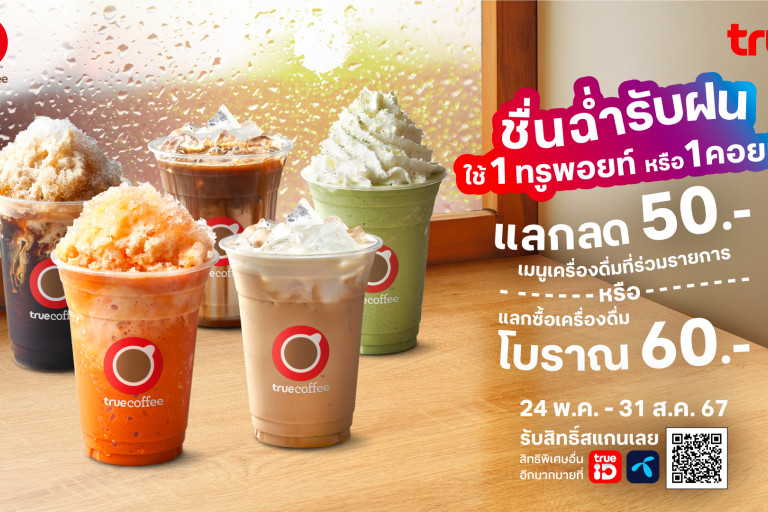 ชื่นฉ่ำรับฝน คุ้มค่าน่าดริงก์…ทรู พร้อมจัดให้ตรงใจยิ่งกว่าเดิม จับมือทรูคอฟฟี่ เวิลด์คลาสคาเฟ่สุดล้ำ ส่ง 2 ดีลใหม่สุดชื่นใจให้ลูกค้าทรู ดีแทค ทรูออนไลน์ และทรูวิชันส์ ได้ดื่มแก้วโปรด พร้อมเปิดโหมดคุ้ม กับส่วนลดโดนใจ เพียงใช้ 1 ทรูพอยท์ หรือ 1 ดีแทคคอยน์ ก็แลกรับส่วนลดแก้วที่ใช่ เมนูไหนก็โดนใจไปหมด ทั้งเมนูโบราณ รสชาติเข้มข้น หอม มัน แบบไทยๆ เสิร์ฟมาพร้อมเกล็ดน้ำแข็ง และ เมนูเครื่องดื่มเย็น หรือเมนูเครื่องดื่มปั่น สดชื่นโดนใจอร่อยลงตัวได้ที่ทรูคอฟฟี่กว่า 80 สาขาทั่วประเทศ แลกสิทธิ์ง่ายๆผ่านแอปทรูไอดี และ ดีแทคแอป ไม่ว่าจะเป็น