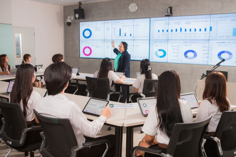 ทั้งนี้ “หลักสูตรนวัตกรรมธุรกิจดิจิทัล” เป็นการเรียนเพื่อให้นักศึกษามีความรู้ทั้งเรื่องธุรกิจ นวัตกรรมความคิดสร้างสรรค์สิ่งใหม่ๆ และดิจิทัล การนำเทคโนโลยีเข้ามาช่วยในการทำงาน โดยหลักสูตรนี้ได้ถูกแบ่งรายวิชาออกเป็น 3 กลุ่มหลักๆ ได้แก่ 1. กลุ่มรายวิชาที่เกี่ยวกับนวัตกรรม เรียนรู้เกี่ยวกับการพัฒนานวัตกรรมให้ผลิตภัณฑ์ บริการ และเพื่อสร้างมูลค่าให้กับองค์กร 2. กลุ่มรายวิชาเกี่ยวกับความรู้พื้นฐานทางด้านธุรกิจ และความเป็นผู้ประกอบการ เช่น การตลาด การบัญชี การเงิน และโลจิสติกส์ 3. กลุ่มรายวิชาที่เกี่ยวกับด้านดิจิทัล เช่น เทคโนโลยีดิจิทัลที่ใช้ในการพัฒนาธุรกิจ ได้แก่ การพัฒนาแอพพลิเคชั่น การพัฒนาระบบฐานข้อมูลลูกค้า เป็นต้น นอกเหนือจากนั้น ทางหลักสูตรยังได้นำเครื่องมือและแนวการสอนสมัยใหม่ เพื่อเสริมสร้างทักษะการเรียนรู้ เช่น การใช้ Chat GPT, การเล่นเกมจำลองธุรกิจ และการใช้ระบบหลังบ้าน ERP (Enterprise Resource Planning) เพื่อช่วยให้นักศึกษาเข้าใจภาพรวมของธุรกิจได้มากขึ้น เป็นต้น