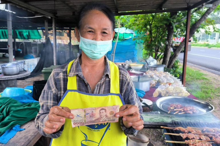 และแบงค์ปลอมที่พบได้มีลูกค้านำมาซื้อกับข้าวที่ร้านของตนเมื่อประมาณช่วงเช้าของวันเสาร์ที่ 25 พฤษภาคม 2567 ที่ผ่านมาโดยในวันนั้นจะมีลูกค้าเข้ามาซื้อกับข้าวจำนวนมากจนตนจำไม่ได้ว่าใครซื้ออะไรบ้างและในวันนั้นตนจำได้ว่ามีลูกค้านำแบงค์พันมาซื้อกับข้าวของตนถึง 4 คน 4 ใบ และตนก็รับมาแล้วก็ทอนเงินไปโดยไม่ได้ดูให้ดีว่าแบงค์ไหนเป็นแบงค์ปลอมจนกระทั่งวันต่อมาตนได้นำเงินไปซื้อของที่ห้างขายส่งแห่งหนึ่งในตัวเมืองยโสธรและในขณะที่ตนจ่ายเงินที่เคาเตอร์ไป จำนวน 8,000 บาท พนักงานก็ได้ตรวจนับเงินและพบความผิดปกติของแบงค์พันอยู่ 1 ใบ จึงได้ตรวจอย่างละเอียดจนพบว่าเป็นแบงค์พันปลอมตนจึงเก็บแบงค์พันปลอมเอาไว้แต่ตนก็ไม่ได้แจ้งความร้องทุกข์กับเจ้าหน้าที่ตำรวจแต่อย่างใดแต่ตนก็อยากจะแจ้งเตือนภัยให้กับพ่อค้าแม่ค้าให้ช่วยกันระมัดระวังและคอยตรวจสอบดูเงินที่ได้มาจากลูกค้าให้ดีก่อนจะเก็บเพราะอาจจะมีลูกค้านำแบงค์ปลอมไปซื้อสินค้าเหมือนกับตนได้เพราะกว่าที่เราจะขายของได้เงินมาก็ยากอยู่แล้วกำไรในวันนั้นต้องหายไปในพริบตา