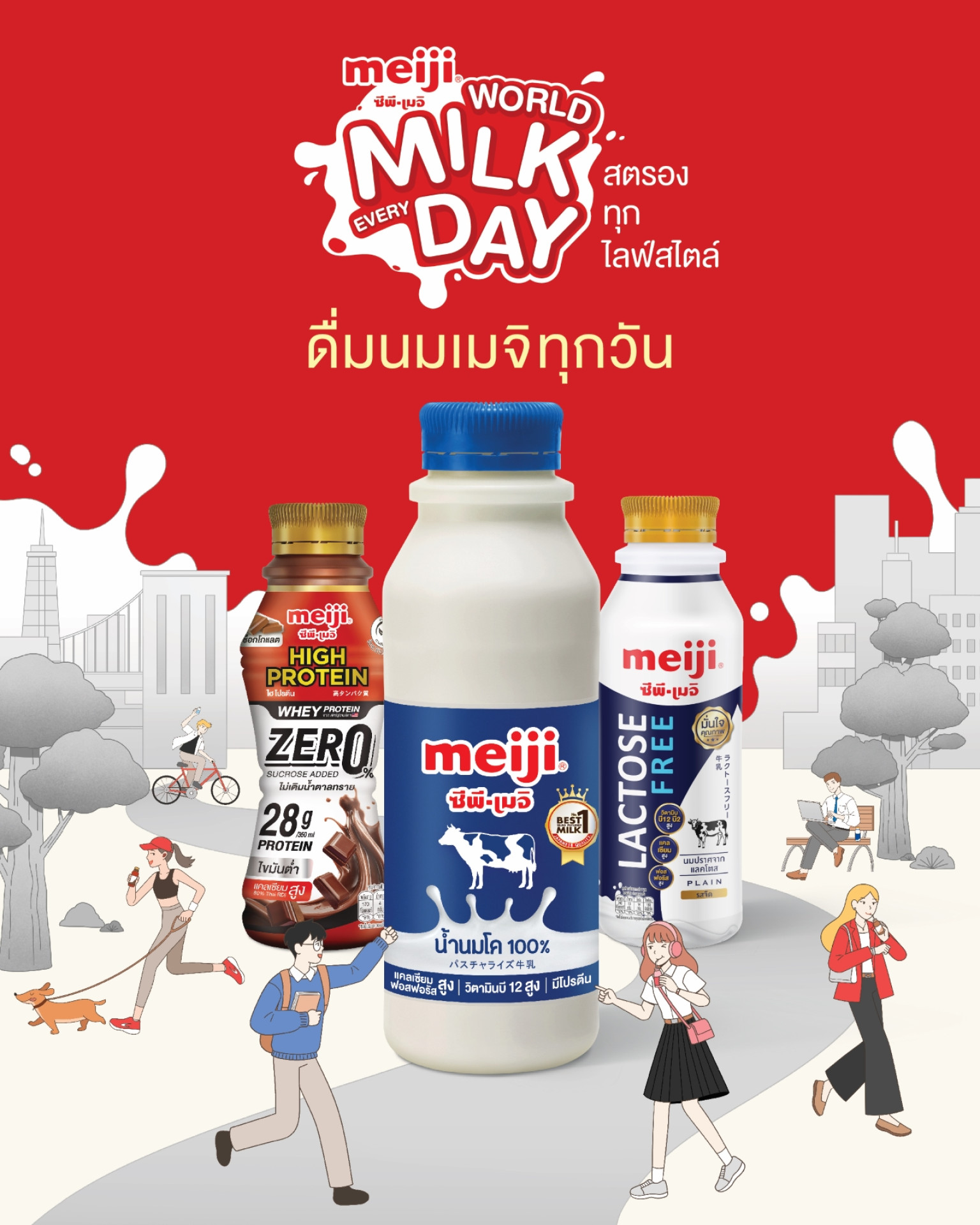 บริษัท ซีพี-เมจิ จำกัด ในฐานะผู้ผลิตและจัดจำหน่ายผลิตภัณฑ์นมพาสเจอร์ไรส์ อันดับ 1 ของประเทศไทย และอยู่คู่คนไทยมากว่า 35 ปี ฉลองวันดื่มนมโลก (World Milk Day) โดยองค์การอาหารและการเกษตรแห่งสหประชาชาติ (The Food and Agriculture Organization หรือ FAO) กำหนดให้ตรงกับวันที่ 1 มิถุนายนของทุกปี พร้อมเชิญชวนคนไทยหันมาดื่มนมมากขึ้น และกระตุ้นให้เห็นถึงความสำคัญของนมซึ่งอุดมไปด้วยสารอาหารสำคัญที่จำเป็นต่อร่างกายตลอดทุกช่วงชีวิต โดยเฉพาะเด็กไทย ควรดื่มนมเพื่อให้มีรูปร่างสูงสมวัยและมีสุขภาพแข็งแรง