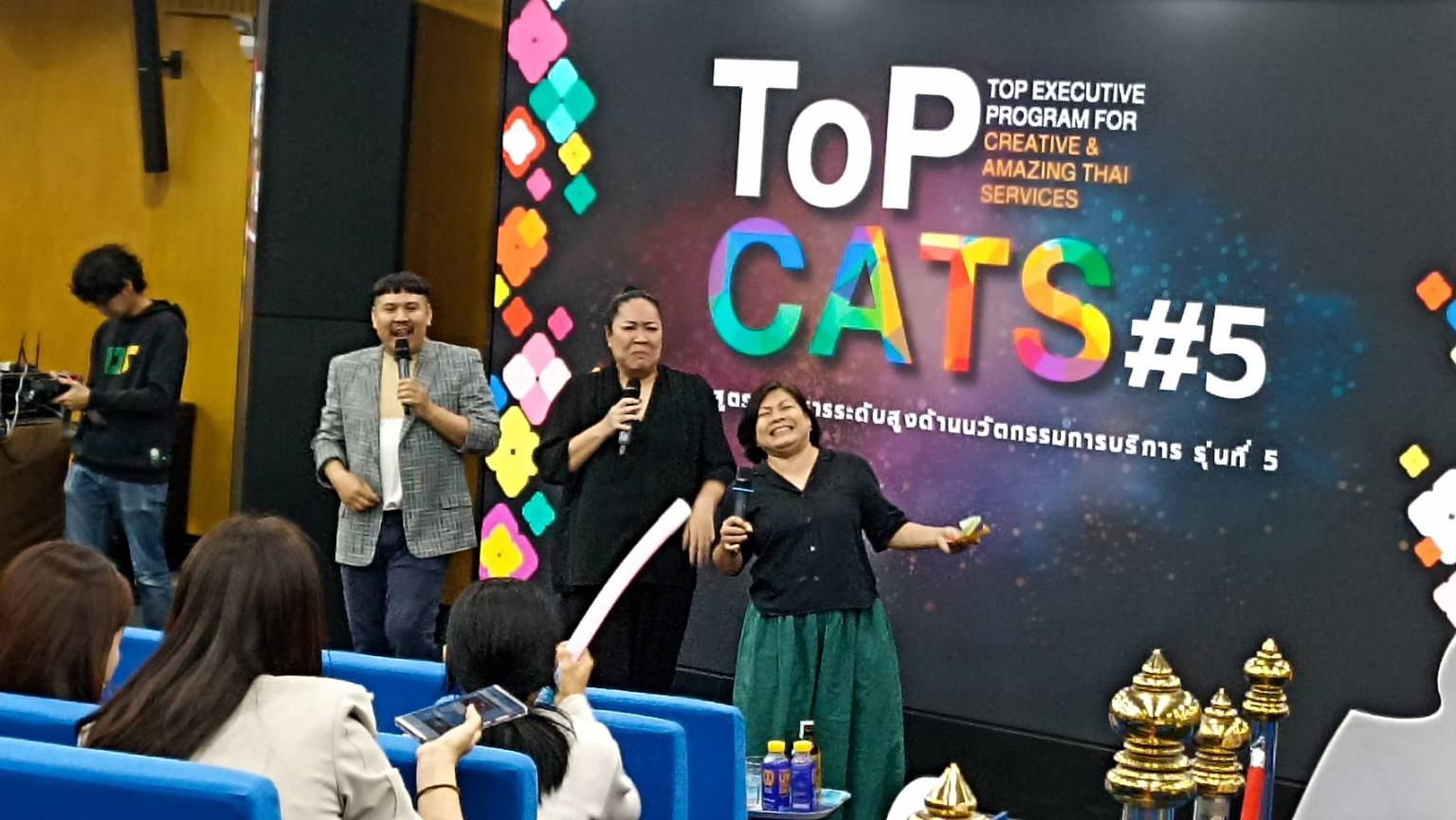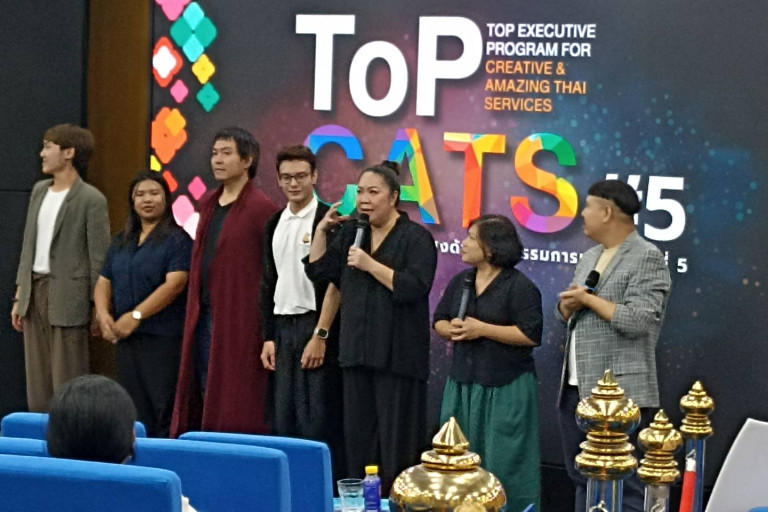 ผู้เข้ารับการศึกษาอบรมหลักสูตร ผู้บริหารระดับสูงด้านนวัตกรรมการบริการ Top Executive Program in Creative & Amazing Thai Service หรือ ToPCATS รุ่นที่ 5 จัดโดย มหาวิทยาลัยหอการค้าไทย ได้เรียนรู้ เรื่อง Roleplay Workshop จากคุณจรรยา สว่างธนากุล หรือครูหยา นักแสดงและอาจารย์ด้านศิลปะการแสดงของมหาวิทยาลัยรัฐและเอกชน พร้อมด้วยทีมงาน