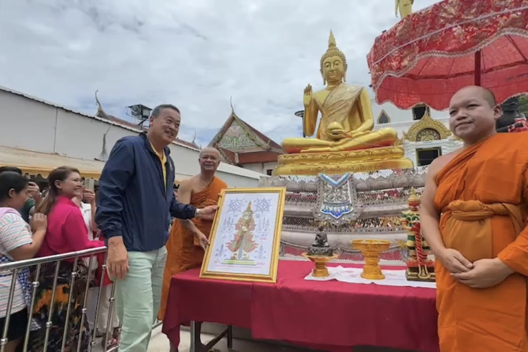 วันที่ 2 มิ.ย. 2567 ที่อ.พระประแดง จ.สมุทรปราการ นายเศรษฐา ทวีสิน นายกรัฐมนตรี ได้เดินทางมาที่ตลาดน้ำบางน้ำผึ้ง โดยเมื่อมาถึงนายกรัฐมนตรีได้กลับนมัสการ พระครูสังฆรักษ์ไพชน สิริธมโม เจ้าอาวาสวัดบางน้ำผึ้งใน โดยเจ้าอาวาสได้มอบท้าวเวสสุวรรณองค์จำลอง ยันต์มหาเศรษฐีดิจิทัล รวยพันล้าน และพระอุปคุตให้กับนายกรัฐมนตรี