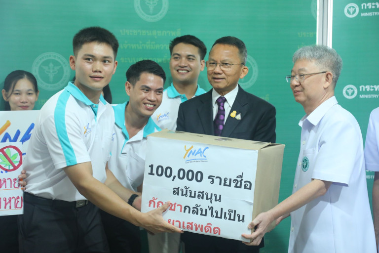 โดยตัวแทนกลุ่ม YNAC กล่าวว่า วันนี้ได้นำรายชื่อผู้สนับสนุนให้นำกัญชากลับไปเป็นยาเสพิด จำนวน 1 แสนรายชื่อ มายื่นให้กับ รมว.สาธารณสุข เพราะที่ผ่านมา ทางกลุ่ม YNAC ได้รับเสียงสะท้อนจากผู้ปกครองมาโดยตลอดถึงผลกระทบของกัญชา ซึ่งเป็นสิ่งที่น่าตกใจว่า การร่วมลงรายชื่อครั้งนี้ มีผู้มาร่วมลงชื่อจำนวนมากกว่าที่ตั้งเป้าไว้ จึงขอให้กระทรวงสาธารณสุข เดินหน้านำกัญชากลับไปเป็นยาเสพติด เพราะขณะนี้ ยังไม่มีอะไรคุ้มครองกลุ่มเปราะบางได้เลย
