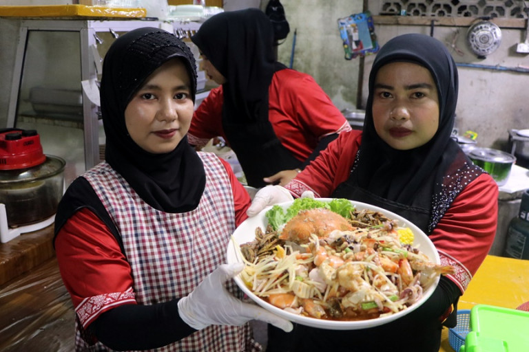 คุณ ซารีดา และคุณ ซายูดี แนฮะ สองสามีภรรยาเจ้าของร้านเล่าว่า ร้านเปิดมา 2 ปีกว่าแล้ว เราจับจุดของลูกค้า ที่ส่วนใหญ่จะเป็นวัยรุ่น ผู้ใหญ่ ที่ชอบกินส้มตำ เราก็เลยลองมาเปิดดู ผลตอบรับดีมากๆเกินคาด รสชาติของเราอาจจะแตกต่างกันเยอะ กับร้านอื่น เพราะว่า เราทำเองทุกอย่าง อย่างเช่น น้ำปลาร้า เรานำมาต้มเอง สูตรเอง เพราะส่วนใหญ่ลูกค้าชอบน้ำปลาร้าที่ต้ม จนทำให้ผลตอบรับ ดีเกินคาดมากๆ จนบางวันลูกน้องไม่ทันกินข้าวเลยก็มี เพราะมีทั้งออเดอร์ในร้านและออเดอร์สั่งทางออนไลน์ ต้องไปส่งก็มีเยอะ บริการลูกค้าให้ถึงที่ สิกเนเจอร์คือ ยำถาด ยำปลาดุกฟู ตำตกครก ไส้อ่อนย่าง น้ำตกเสื้อร้องไห้ ทุกอย่างขายดีที่สุด ส่วนอาหารเซต จะมีเป็นเซต A-B-C นอกจากอาหารเซตแล้ว ยังมีอาหารอย่างอื่นแล้วแต่ลูกค้าจะสั่ง ทำได้หมด รายได้ต่อวัน ณ. ตอนนี้ วันหนึ่เฉลี่ยประมาณ  30,000-50,000 บาทต่อวัน ถ้าช่วงเทศกาลจะเยอะกว่า บางวันลูกน้องจะเหนื่อยมากจนไม่ทันได้กินข้าวเลยก็มี แต่ก็คุ้มกับที่เราเหนื่อย ได้60,000-70,000 บาทต่อวัน เราภูมิใจ ถึงแม้ว่า ร้านเราอยู่ในพื้นที่สีแดง ส่วนมากคนที่ดูโซเชียล ดูข่าว กลัวที่จะมา ไม่ต้องกลัว ลองมา เปิดใจมา แล้วจะรู้ว่ารสชาติ ความอร่อย ไม่แพ้จากที่อื่นแน่นอน