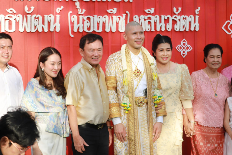 วันที่ 8 มิ.ย.67 เวลา 17.30 น.ผู้สื่อข่าวรายงาน ว่า ที่ลานเทศบาลตำบลธัญบุรี (คลองเจ็ด) ต.ลำผักกูด อ.ธัญบุรี จ.ปทุมธานี นายทักษิณ ชินวัตร อดีตนายกรัฐมนตรี เดินทางมาเป็นประธานงานเลี้ยงฉลองบวช นายสมิทธิพัฒน์ หลีนวรัตน์ ลูกชายคนสุดท้อง ของนายกฤษฎา หลีนวรัตน์ (นายกเบี้ยว) นายกเทศมนตรีตำบลธัญบุรี โดยมีน.ส.แพทองธาร ชินวัตร หัวหน้าพรรคเพื่อไทย (พท.) ร่วมเดินทางไปด้วย โดยบรรยากาศเป็นไปอย่างคึกคัก มีการจัดโต๊ะจีนกว่า 2,000 โต๊ะ โดยผู้ร่วมงานส่วนใหญ่ ต่างพร้อมใจกันใส่เสื้อแดงมาร่วมงาน ซึ่งถือเป็นครั้งแรกที่นายทักษิณได้พบกับมวลชนเรือนหมื่น