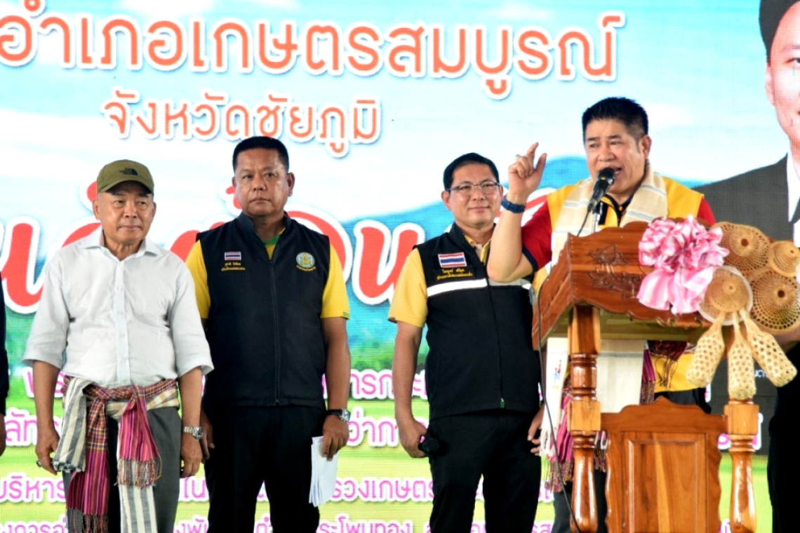จากนั้นรัฐมนตรีว่าการกระทรวงเกษตรและสหกรณ์ และคณะ ได้เดินทางต่อไปยัง โครงการอ่างเก็บน้ำช่องพันลำ ตำบลสระโพนทอง อำเภอเกษตรสมบูรณ์ จังหวัดชัยภูมิ ซึ่งประสบปัญหาเนื่องจากมีพื้นที่รับน้ำฝนไม่เพียงพอกับปริมาณน้ำท่าที่ไหลลงอ่างฯ เฉลี่ยปีละ 2,770,000 ลูกบาศก์เมตร แต่อ่างฯ สามารถเก็บกักน้ำได้เพียง 125,800 ลูกบาศก์เมตรเท่านั้น รวมไปถึงที่ตั้งอยู่บริเวณตีนเขา ประกอบกับความเร็วการไหลของน้ำค่อนข้างมาก ทำให้คันดินสันเขื่อนโดนกัดเซาะจนชำรุดและไม่สามารถเก็บกักน้ำได้อย่างเต็มศักยภาพ กรมชลประทาน ได้วางแผนปรับปรุงอ่างฯ เพื่อแก้ไขปัญหาดังกล่าว ทั้งยังช่วยเพิ่มความจุกักเก็บน้ำได้เพิ่มมากขึ้น หากดำเนินการแล้วเสร็จ จะสามารถเพิ่มพื้นที่กักเก็บน้ำได้ถึง 2,260,000 ลูกบาศก์เมตร พื้นที่รับประโยชน์กว่า 1,300 ไร่ เป็นแหล่งน้ำต้นทุนเพื่อการอุปโภคบริโภคและ สามารถส่งน้ำช่วยเหลือพื้นที่เพาะปลูกในฤดูแล้งได้ประมาณ 260 ไร่