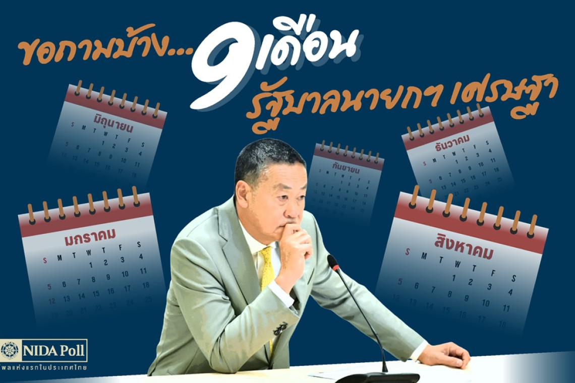 เมื่อวันที่ 9 มิ.ย.67 ศูนย์สำรวจความคิดเห็น “นิด้าโพล” สถาบันบัณฑิตพัฒนบริหารศาสตร์ (นิด้า) เปิดเผยผลการสำรวจของประชาชน เรื่อง “ขอถามบ้าง … 9 เดือน รัฐบาลนายกฯ เศรษฐา” ทำการสำรวจระหว่างวันที่ 4-5 มิ.ย.67 จากประชาชนที่มีอายุ 18 ปีขึ้นไป กระจายทุกภูมิภาค ระดับการศึกษา อาชีพ และรายได้ ทั่วประเทศ รวมทั้งสิ้น จำนวน 1,310 หน่วยตัวอย่าง เกี่ยวกับการทำงานของรัฐบาลนายกรัฐมนตรี นายเศรษฐา ทวีสิน ในรอบ 9 เดือน