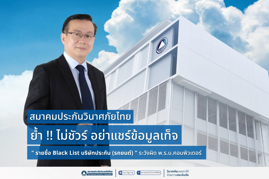 สมาคมประกันวินาศภัยไทย ย้ำเตือนประชาชนเช็คข้อมูลก่อนแชร์ข้อความ “รายชื่อ Black List บริษัทประกัน (รถยนต์)” พร้อมยกเคสผู้กระทำความผิดที่ถูกดำเนินคดีทางกฎหมาย