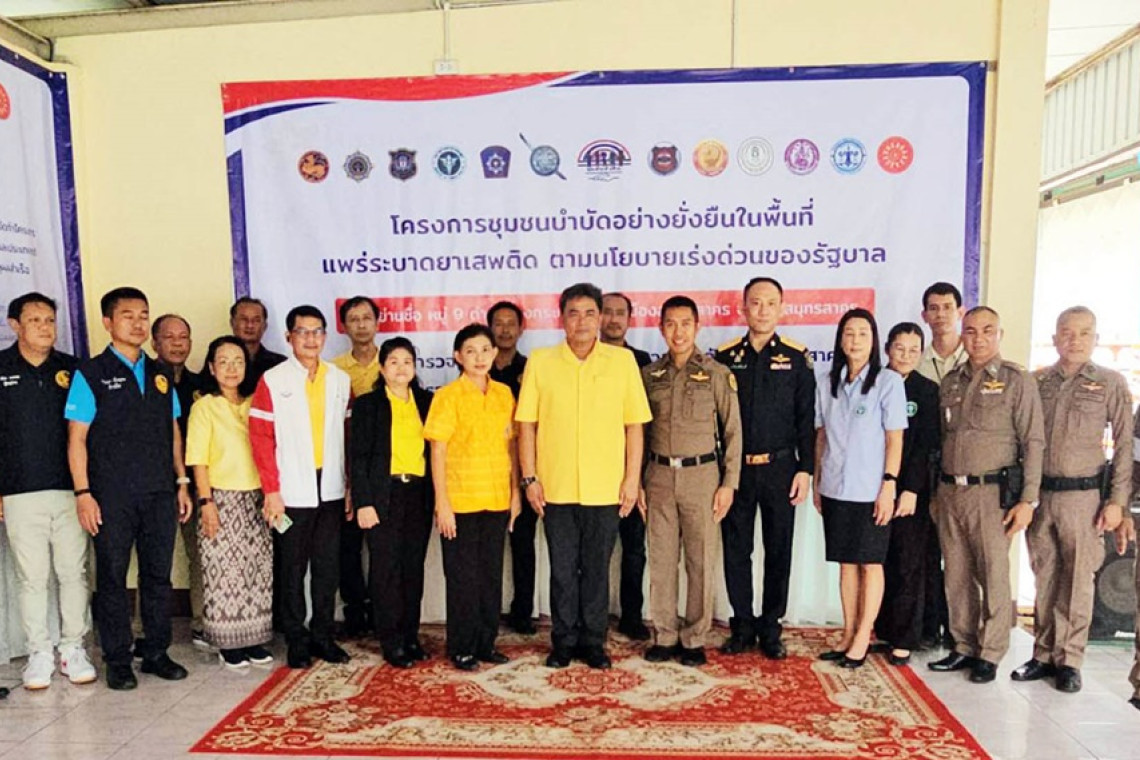 “ทั้งนี้ตามที่รัฐบาลได้มีกำหนดนโยบายเพื่อการป้องกันและแก้ไขปัญหายาเสพติดอย่างเร่งด่วน โดยมี สนง.ตำรวจแห่งชาติ ผู้ร่วมดำเนินการจัดโครงการอบรมด้านชุมชนบำบัดยาเสพติด ในพื้นที่เสี่ยงการแพร่ระบาดทั่วประเทศ เพื่อการแก้ไขปัญหายาเสพติดแบบครบวงจรตามยุทธศาสตร์ชาติ ดังนั้นทางสถานีตำรวจ สภ.เมืองสมุทรสาคร จึงได้กำหนดขึ้นในพื้นที่เขตบ้านย่านซื่อ หมู่ที่ 9 ต.บางกระเจ้า ในฐานะเป็นอีกหมู่บ้านหนึ่งที่จะได้รับการแก้ไขอย่างเร่งด่วน ในฐานะเป็นผู้รับผิดชอบโครงการฯ”