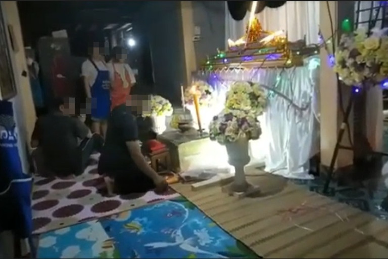 ผู้สื่อข่าวรายงาน ว่า เมื่อวันที่10 มิ.ย.2567 ที่บ้านหมู่ที่ 10 ต.หนองพันทา อ.โซ่พิสัย จ.บึงกาฬ ซึ่งเป็นที่ตั้งศพของนางสาวนางสาวสุภัชตรา อายุ 22 ปี ซึ่งเป็นบ้านเกิดเพื่อบำเพ็ญกุศลตามประเพณีของหมู่บ้าน ช่วงกลางวันได้มีญาติและเพื่อนบ้านได้มาช่วยจัดเตรียมสถานที่เพื่อรับร่างน้อง มีการกางเต้นท์ จัดโต๊ะเก้าอี้ เตรียมอาหารไว้บริการแขกที่มาแสดงความเสียใจและคารวะศพผู้ตายตามประเพณี นอกจากนี้ยังได้เตรียมโลงเย็นมาเสียบปลั๊กไฟไว้รอ