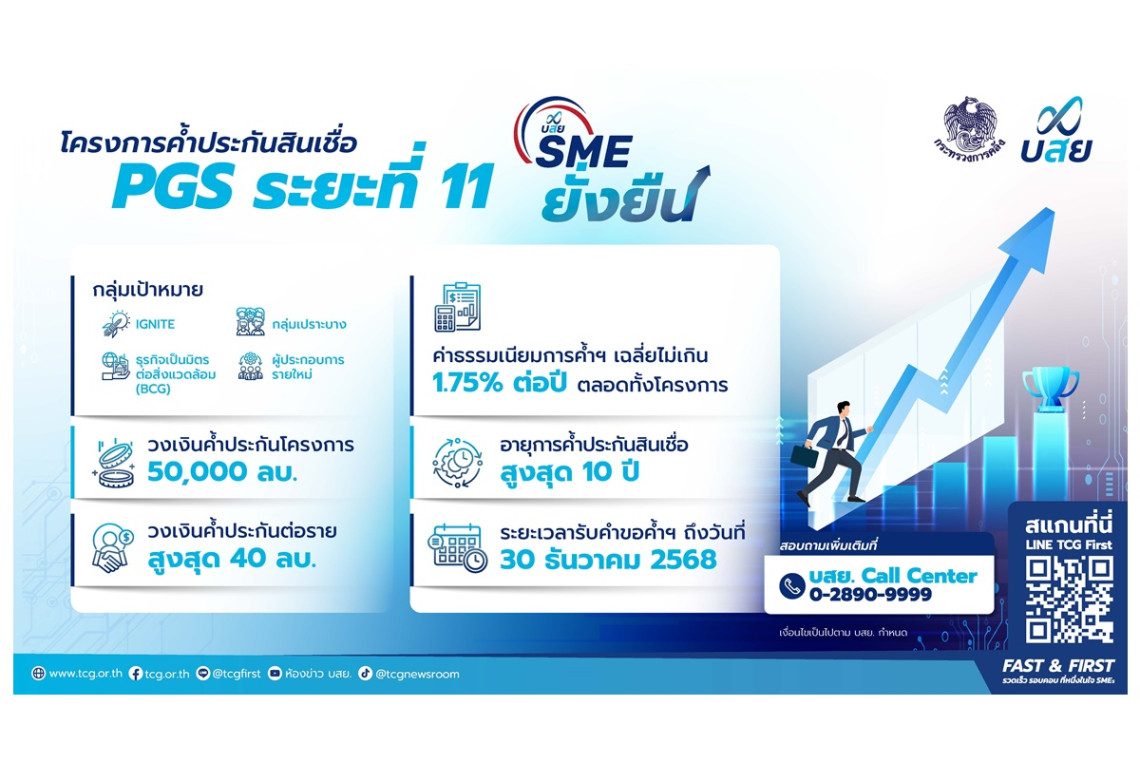 นายสิทธิกร ดิเรกสุนทร กรรมการและผู้จัดการทั่วไป บรรษัทประกันสินเชื่ออุตสาหกรรมขนาดย่อม (บสย.) เปิดเผยว่า ที่ประชุมคณะรัฐมนตรีเมื่อวันที่ 11 มิ.ย. 2567 มีมติเห็นชอบอนุมัติโครงการค้ำประกันสินเชื่อ PGS ระยะที่ 11 ( บสย. SMEs ยั่งยืน) วงเงิน 50,000 ล้านบาท ค่าธรรมเนียมการค้ำฯ เฉลี่ยไม่เกิน 1.75% ต่อปี ตลอดทั้งโครงการ ฟรีค่าธรรมเนียมเริ่มต้น 2 ปีแรก (รัฐบาลสนับสนุน) เพื่อช่วยเหลือผู้ประกอบการ SMEs ให้สามารถเข้าถึงแหล่งเงินทุนได้ง่ายขึ้น มั่นใจช่วย SMEs ได้สินเชื่อกว่า 77,000 ราย กระตุ้นเศรษฐกิจผ่านกลไกค้ำประกันสินเชื่อ ลดความเสี่ยงทางการเงิน และเข้าถึงสินเชื่อในระบบ ตามนโยบายรัฐบาล เติมทุน SMEs เพื่อความยั่งยืน ภายใต้โครงการนี้ มุ่งกลุ่มเป้าหมาย 4 กลุ่มหลัก ได้แก่ 1.กลุ่มเปราะบาง 2.กลุ่มธุรกิจที่เป็นมิตรกับสิ่งแวดล้อม (BCG) 3.กลุ่มผู้ประกอบการใหม่/นิวเจน (NEW GEN) และ 4. กลุ่มอิกไนต์ ไทยแลนด์ (IGNITE THAILAND) ครอบคลุมนิติบุคคล และบุคคลธรรมดา และกลุ่มรายย่อย (Micro SMEs) ที่ขาดหลักประกันหรือหลักประกันไม่เพียงพอ ซึ่งโครงการนี้มีวัตถุประสงค์เพื่อเพิ่มสภาพคล่อง และลดต้นทุนทางการเงิน คาดกระตุ้นเศรษฐกิจในภาพรวมและก่อให้เกิดสินเชื่อได้มากกว่า 60,000 ล้านบาท ก่อให้เกิดผลประโยชน์ทางเศรษฐกิจกว่า 200,000 ล้านบาท และทำให้เกิดการจ้างงานกว่า 300,000 ตำแหน่ง โดยหลังจากนี้ บสย. จะเร่งดำเนินการลงนามบันทึกข้อตกลงความร่วมมือระหว่าง บสย.และสถาบันการเงินพันธมิตร เพื่อเปิดรับคำขอค้ำประกันสินเชื่อต่อไป
