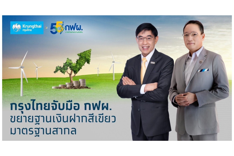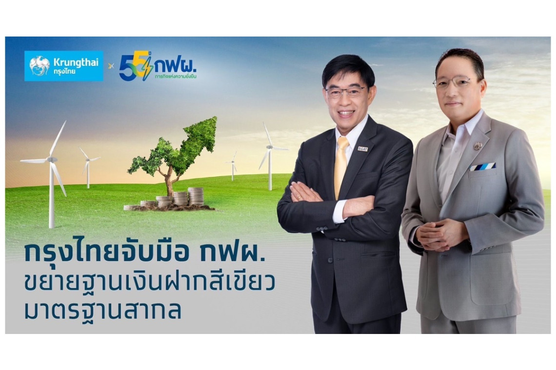 การไฟฟ้าฝ่ายผลิตแห่งประเทศไทย (กฟผ.) จับมือ ธนาคารกรุงไทย ขยายความร่วมมือเงินฝากสีเขียว ภายใต้หลักเกณฑ์ Green Financing Framework นำบัญชีการดำเนินงานหลักของ กฟผ. เข้าร่วมโครงการเงินฝากสีเขียว นับเป็นครั้งแรกของธนาคารพาณิชย์ไทย เพื่อสนับสนุนสินเชื่อในโครงการเพื่อสิ่งแวดล้อม ตอกย้ำความเป็นผู้นำด้านนวัตกรรม ESG Financial Solution สนับสนุนเป้าหมายของทั้งสององค์การ ในการพัฒนาสิ่งแวดล้อม พร้อมยกระดับสังคมไทยสู่ความยั่งยืน