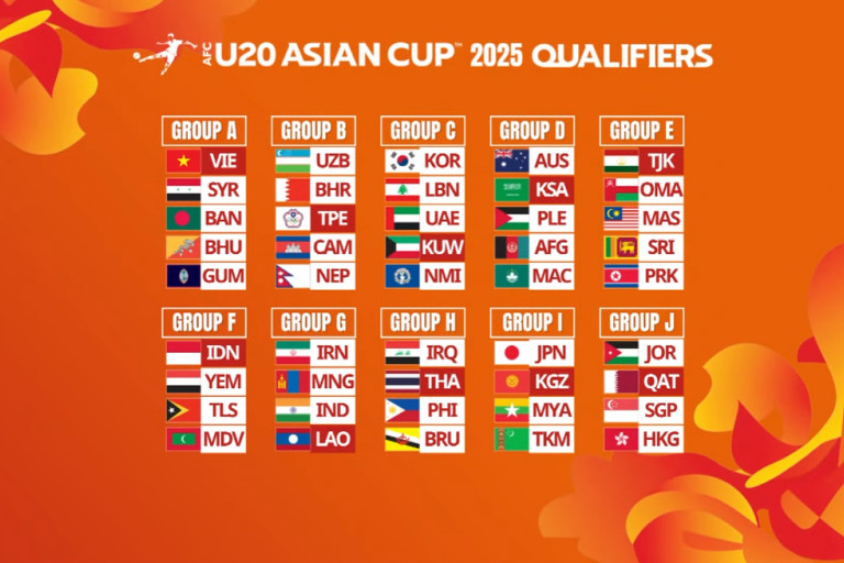 วันที่ 13 มิถุนายน 2567 สมาพันธ์ฟุตบอลแห่งเอเชีย หรือ เอเอฟซี จัดพิธี จับสลาก แบ่งสายการแข่งขันฟุตบอลชิงแชมป์เอเชีย รุ่นอายุไม่เกิน 20 ปี รอบคัดเลือก โดยผลการแบ่งสายมีดังนี้