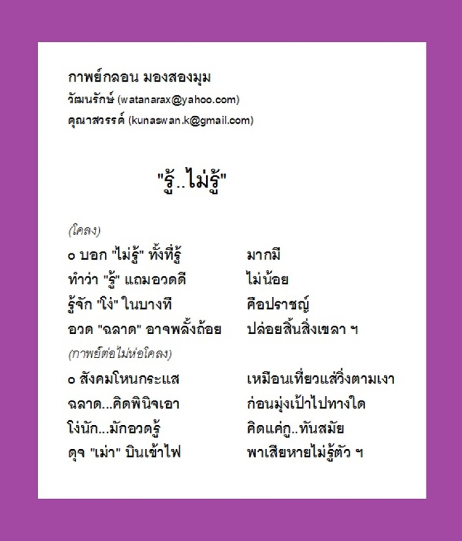 "รู้..ไม่รู้" กาพย์กลอนมองสองมุม (14.6.67)
