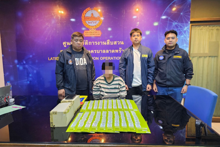 1.ซิมโทรศัพท์เคลื่อนที่ เครือข่าย เอไอเอส ที่ลงทะเบียนพร้อมใช้งานแล้ว จำนวน 200 ซิม 2.โทรศัพท์มือถือ ยี่ห้อ VIVO x100 สีดำ จำนวน 1 เครื่อง สถานที่จับกุม บริเวณถนนสาธารณะปากซอยลาดพร้าว 107 แยก 13 แขวงคลองจั่น เขตบางกะปิ กรุงเทพมหานคร