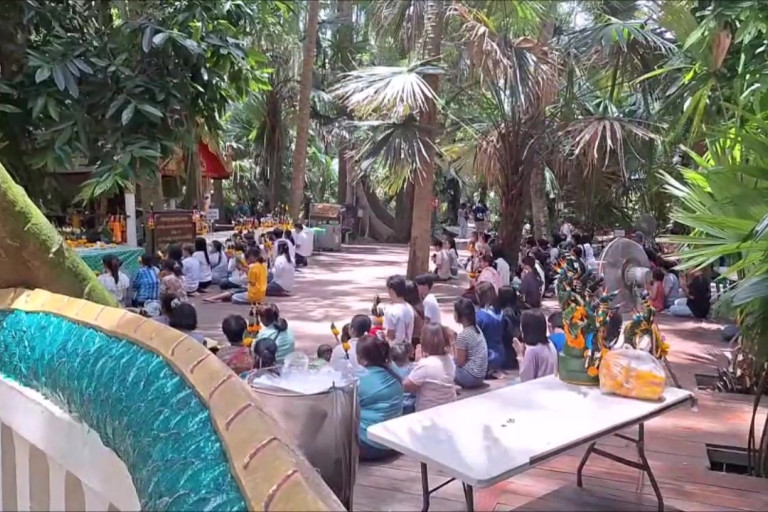 วันที่ 15 มิ.ย.67 ผู้สื่อข่าวรายงานว่า ที่เกาะคำชะโนดวังนาคินทร์ ดินแดนพญานาค พ่อปู่ศรีสุทโธและย่าประทุมมา ตั้งอยู่ที่บ้านโนนเมือง หมู่ 11 ต.บ้านม่วง อ.บ้านดุง จ.อุดรธานี ตลอดทั้งวันมีนักท่องเที่ยวจากทั่วสารทิศหลั่งไหลเข้ามากราบสักการะพ่อปู่และแม่ย่าอย่างเนืองแน่นโดยเฉพาะวันนี้เป็นวันหยุดสัปดาห์และใกล้วันหวยออก โดยนักท่องเที่ยวและประชาชนที่ศรัทธาพ่อปู่และแม่ย่า ต่างพากันมาแบบครอบครัว คู่รัก และหมู่คณะ เดินถือพานบายศรีเข้าไปยังเกาะคำชะโนด ตั้งจิตอธิษฐาน ขอพรจากสิ่งศักดิ์สิทธิ์ ให้ประสบความสำเร็จในหน้าที่การงาน ธุรกิจ และมีโชคลาภ แต่ช่วงนี้ฝากแจ้งนักท่องเที่ยวที่จะเดินทางมากราบสักการะปู่ศรีสุทโธและย่าประทุมมา ทางเจ้าหน้าที่ฯ กำลังทาสีรูปปั้นพญานาค และลำตัวพญานาคที่ยาวกว่า 200 เมตร อาจจะมีกลิ่นของสีใหม่ และบริเวณบ่อน้ำศักดิ์สิทธิ์อาจจะไม่ได้รับความสะดวก เพราะอยู่ในช่วงปรับปรุง ส่วนบริเวณต้นมะเดื่อยักษ์ ขุมทรัพย์ปู่ย่า ตอนนี้เจ้าหน้าที่ฯ ก็ห้ามนักท่องเที่ยวไปลูบๆ คลำๆ หาเลขเด็ดแล้ว