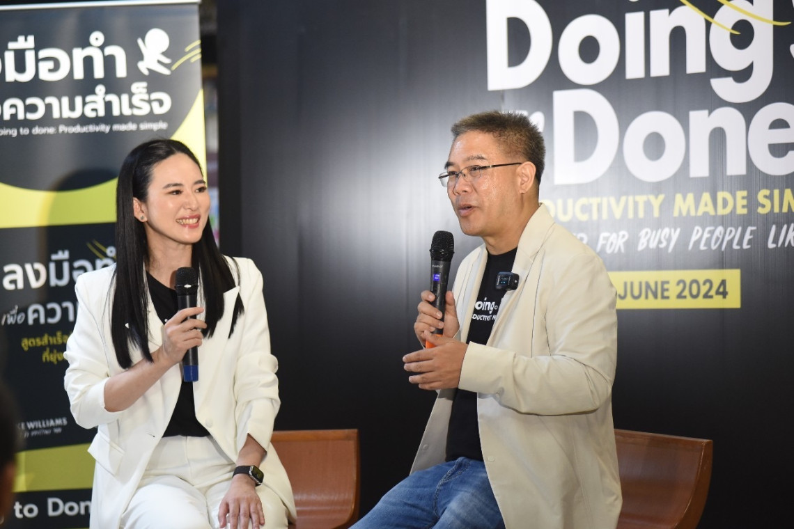 วันที่ 16 มิถุนายน 2567 ที่ร้านหนังสือ Asia Books ห้างสรรพสินค้า Central World ชั้น 6 เขตปทุมวัน ดร.ทรรศวรรณ ปรีดาวิภาต วิทยากรและกรรมผู้จัดการบริษัท Entrepreneurship Plus และ ดร.ธนัย ชรินทร์สาร ที่ปรึกษาและวิทยากรด้านกลยุทธ์ ร่วมกันจัดงานเปิดตัวหนังสือ ลงมือทำ เพื่อความสำเร็จ สูตรสำเร็จจัดการงานและชีวิตที่ยุ่งเหยิงแบบง่าย ๆ ซึ่งแปลมาจากหนังสือ DOING TO DONE: PRODUCTIVITY MADE SIMPLE ผลงานของ MIKE WILLIAMS และถือเป็นครั้งแรกในการนำหนังสือดังกล่าวมาแปลเป็นภาษาไทย