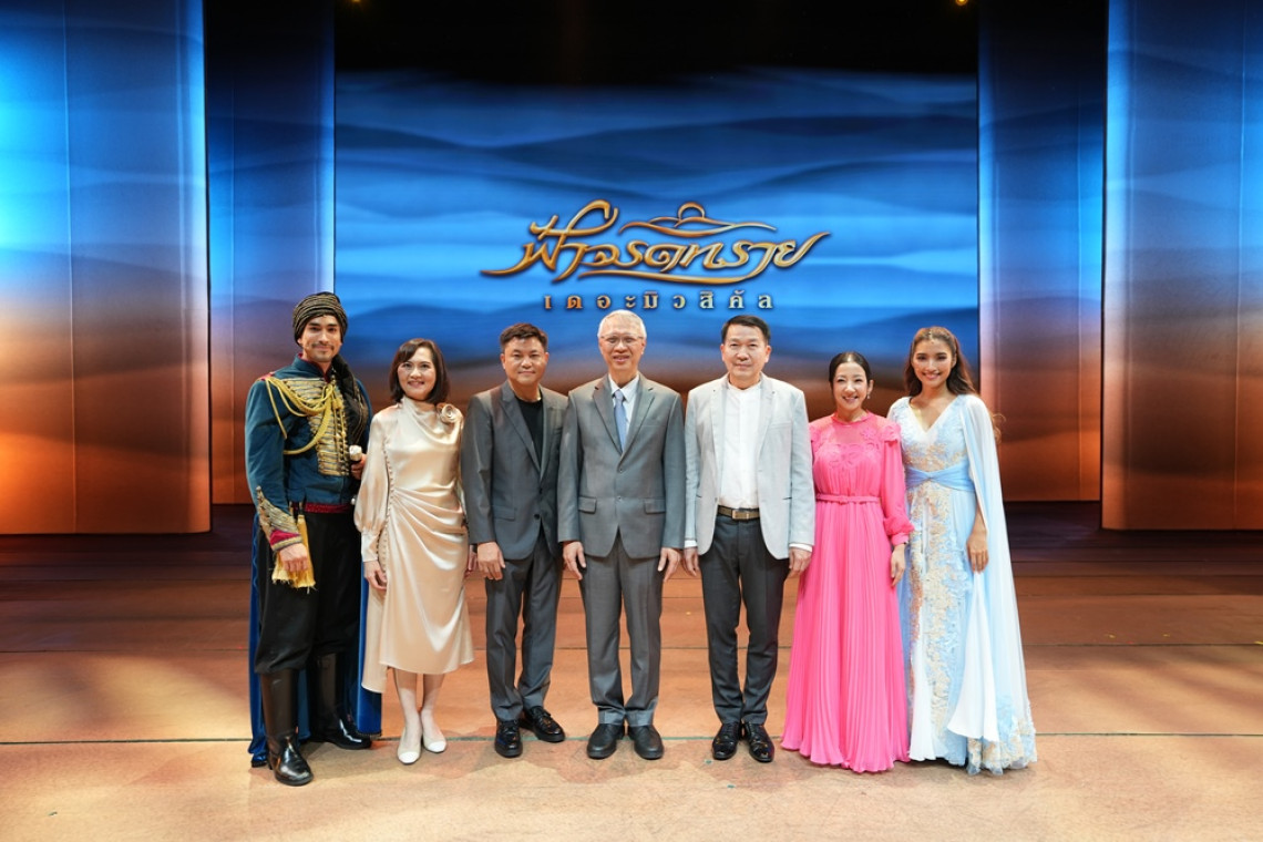 ศ.คลินิก นพ.อาทิตย์ อังกานนท์ คณบดีคณะแพทยศาสตร์โรงพยาบาลรามาธิบดี และประธานคณะกรรมการบริหารมูลนิธิรามาธิบดีฯ (กลาง) พร้อมด้วย ศ.นพ.ปิยะมิตร ศรีธรา ที่ปรึกษาคณะกรรมการบริหารมูลนิธิรามาธิบดีฯ (ที่ 3 จากขวา) รศ.(พิเศษ) พญ.วิไล ธนสารอักษร อาจารย์ประจำคณะแพทยศาสตร์ โรงพยาบาลรามาธิบดี มหาวิทยาลัยมหิดล (ที่ 2 จากซ้าย) พรรณสิรี คุณากรไพบูลย์ศิริ ผู้จัดการมูลนิธิรามาธิบดีฯ (ที่ 2 จากขวา) ร่วมชมละครเวทีฟ้าจรดทราย เดอะมิวสิคัล รอบการกุศล โดยมี ถกลเกียรติ วีรวรรณ ณเดชน์ คูกิมิยะ และแก้ม-กุลกรณ์พัชร์ สองนักแสดงจากละครเวทีฟ้าจรดทราย เดอะมิวสิคัล ให้การต้อนรับ ซึ่งรายได้จากการจำหน่ายบัตรฯ รอบการกุศล และการบริจาค ทั้งสิ้น 23,081,250 บาท นำไปสมทบทุนมูลนิธิรามาธิบดีฯ โครงการอาคารโรงพยาบาลรามาธิบดีและย่านนวัตกรรมโยธี ณ เมืองไทยรัชดาลัยเธียเตอร์ เมื่อเร็วๆ นี้