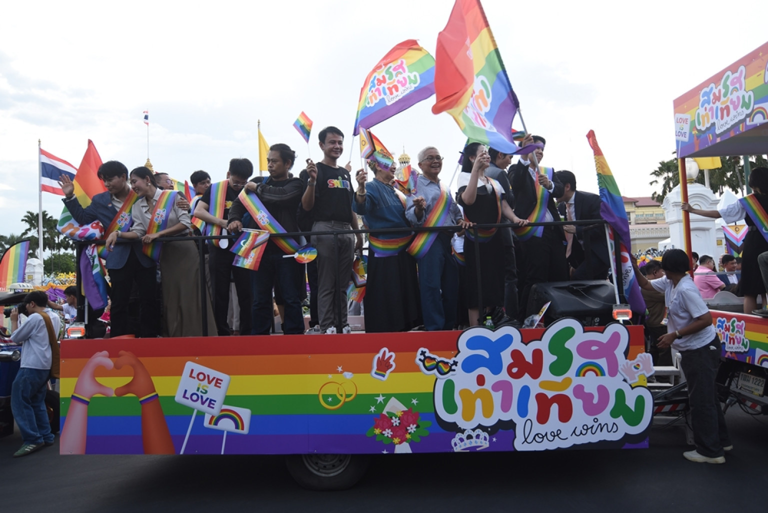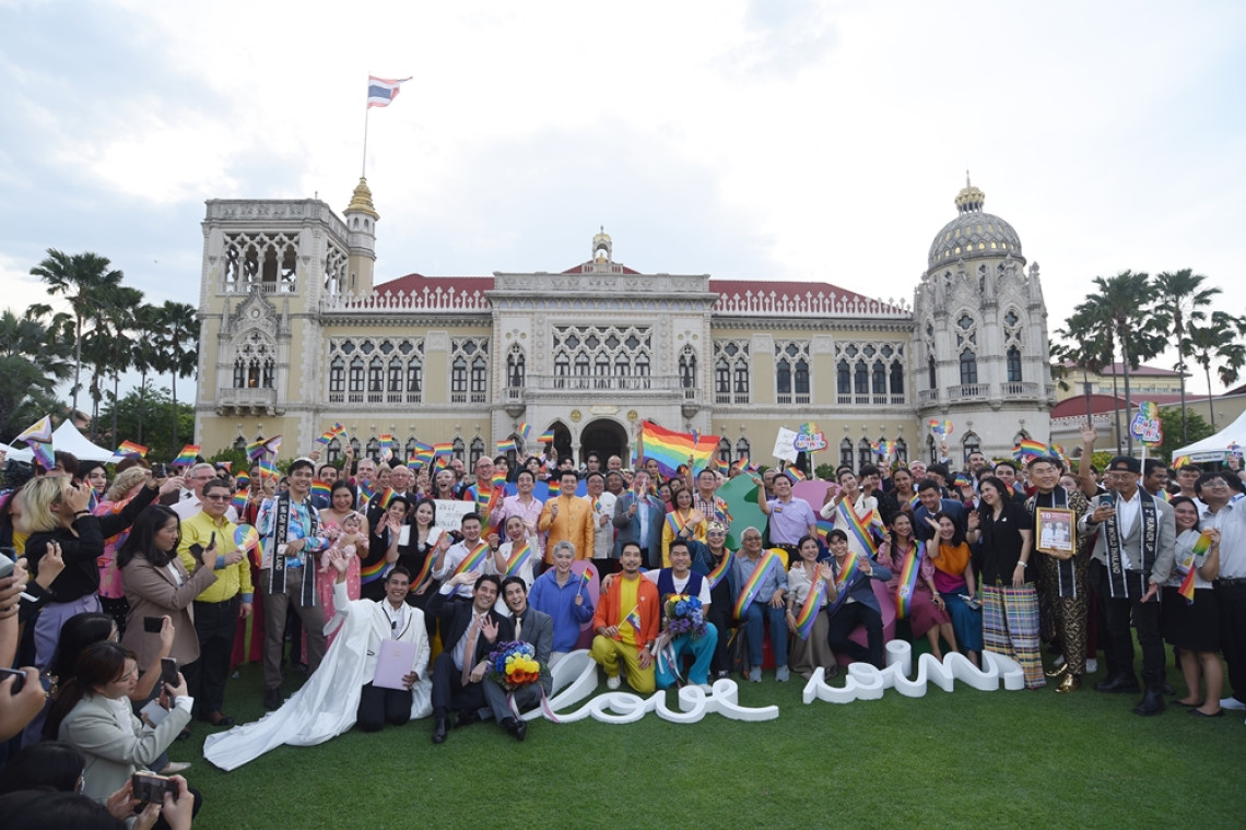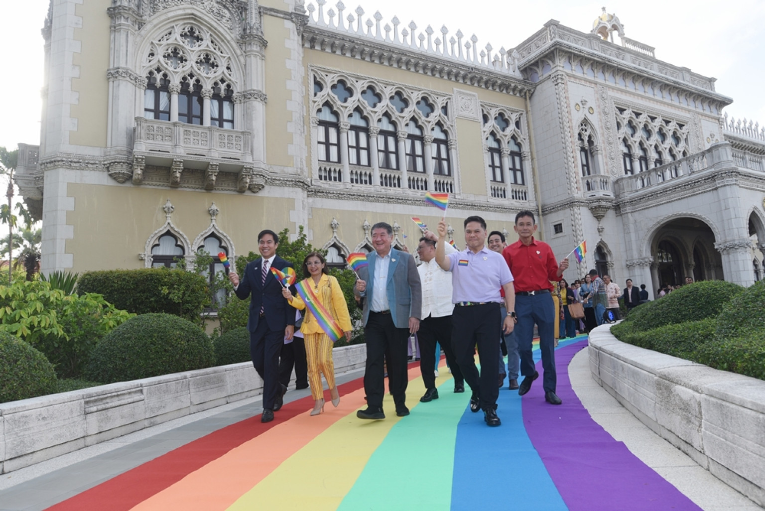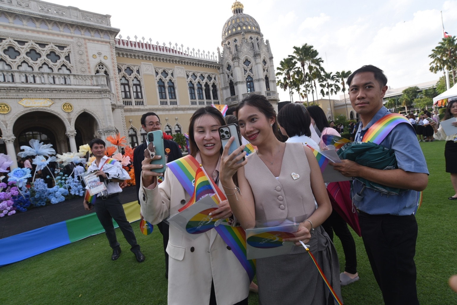 วันที่ 18 มิ.ย. ผู้สื่อข่าวรายงานบรรยากาศที่ทำเนียบรัฐบาล ภายหลังที่ประชุมวุฒิสภามีมติเห็นชอบพิจารณาร่างพระราชบัญญัติ (พ.ร.บ.) แก้ไขเพิ่มเติมประมวลกฎหมายแพ่งและพาณิชย์ (ฉบับที่…) พ.ศ. … หรือกฎหมายสมรสเท่าเทียม ในวันเดียวกันนี้ ได้มีการจัดเตรียมสถานที่บริเวณสนามหญ้าหน้าตึกไทย ทำเนียบรัฐบาล ตั้งแต่ช่วงเช้าที่ผ่านมา อาทิ การทำถนนสายรุ้งแห่งความเท่าเทียมรอบสนามหญ้าหน้าตึกไทยคู่ฟ้า ไปจนถึงหน้าประตูตึกไทยฯ และยังมีกิจกรรมภายในงาน เช่น Workshop เพ้นท์สีแห่งความเท่าเทียม ตู้สติกเกอร์ (Sticker Photp Booth) ซุ้มอาหาร ซุ้มดอกไม้จุดถ่ายภาพแสดงสัญลักษณ์แห่งความเท่าเทียมทั่วงาน