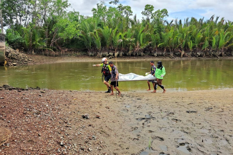 โดยจุดที่ชาวบ้านไปพบศพ อยู่บริเวณคุ้งน้ำ ห่างจากสะพานคลองเกาะกลาง ซึ่งเป็นจุดที่เรือชนเสาสะพาน ออกไปประมาณ 30 เมตร ซึ่งชาวบ้านพร้อมกับ นายนภดล อายุ 62 ปี ชาว ต.เกาะขวาง ซึ่งเป็นผู้รอดชีวิตจากอุบัติเหตุครั้งนี้ ได้พากันนำศพเข้าฝั่ง พร้อมทั้งแจ้งเจ้าหน้าที่ให้มาตรวจสอบ โดยผู้เสียชีวิตทราบชื่อคือ นายบุญเลิศ อายุ 41 ปี เป็นผู้หลบหนีเชื้อสายไทยจากเกาะกง ปัจจุบันมีบัตรประจำตัว ต.คลองใหญ่ อ.คลองใหญ่ จ.ตราด ในสภาพสวมเสื้อยืดแขนสั้น สวมเสื้อแขนยาวคลุมทับ ใส่กางเกงขาสั้น ตรวจสอบเบื้องต้น มีเลือดออกตา จมูก ไม่พบบาดแผลตามลำตัว ทางเจ้าหน้าที่ตำรวจจึงบันทึกภาพไว้เป็นหลักฐาน