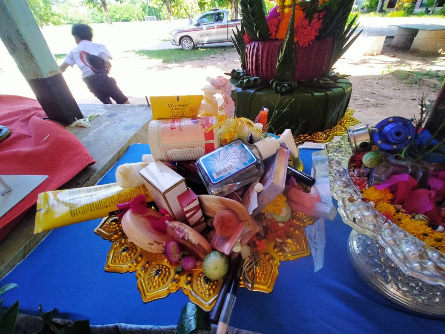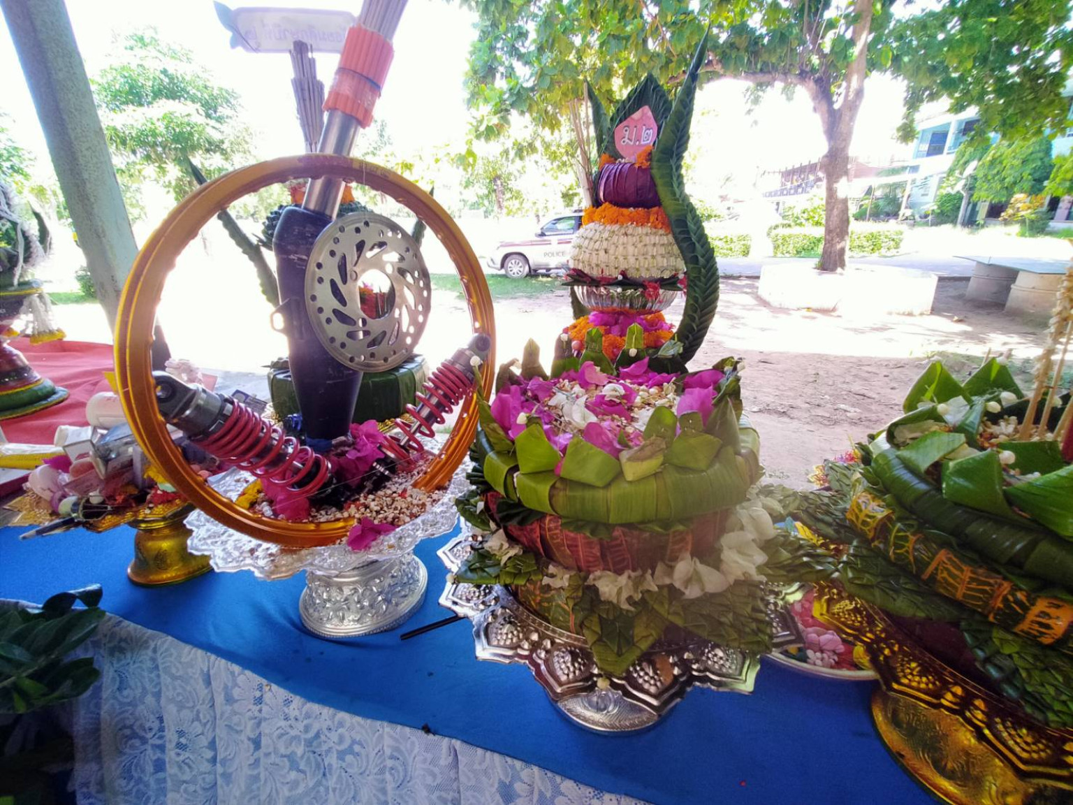 โดยนักเรียนในแต่ละระดับชั้นได้แสดงไอเดียความสามารถการทำพานไหว้ครูแข่งกัน และที่โดดเด่นสร้างสรรค์ และเป็นที่ฮือฮา คือพานหไหวครูของนักเรียนชั้น ม.2 ที่นำวงล้อ ท่อไอเสีย โช๊ค และจานเบรคของจักรยานยนต์มาตกแต่งเป็นพานไหว้ครู เพื่อมอบให้แด่ครูแดร์ หรือครูวิทยากร ที่เป็นตำรวจ ที่มาสอนให้ความรู้เรื่องการป้องกันและต่อต้านการใช้ยาเสพติดในสถานศึกษาให้กับเด็กนักเรียน เพื่อแสดงว่าจะเลิกแว้นรถจักรยานยนต์เสียงดัง ซึ่งก็ถือเป็นความคิดที่แปลกใหม่สำหรับการทำพานไหว้ครูในครั้งนี้