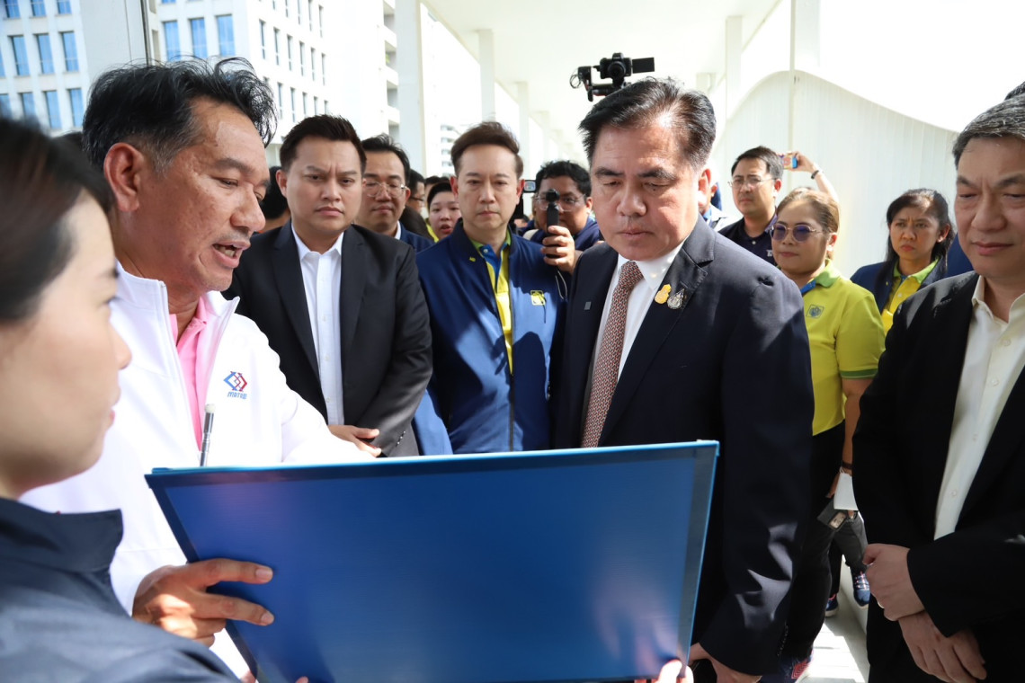 โดยมี นายพิเชฐ คุณาธรรมรักษ์ อธิบดีกรมการขนส่งทางราง นายกิตติกร ตันเปาว์ รองผู้ว่าการ (วิศวกรรม) การรถไฟฟ้าขนส่งมวลชนแห่งประเทศไทย (รฟม.) นายสุรพงษ์ เลาหะอัญญา ผู้อำนวยการใหญ่สายธุรกิจ MOVE และกรรมการผู้อำนวยการใหญ่ บริษัท ระบบขนส่งมวลชนกรุงเทพ จำกัด (มหาชน) หรือบีทีเอสซี และ ดร.นาฬิกอติภัค แสงสนิท กรรมการผู้จัดการ บริษัท ธนารักษ์พัฒนาสินทรัพย์ จำกัด หรือ DAD Asset Development ให้การต้อนรับและร่วมตรวจเยี่ยมการเปิดใช้งานทางเดิน Skywalk ซึ่งมีความยาว 205 เมตร เชื่อมต่อกับอาคารจอดรถ D และสวนลอยฟ้าขนาด 5 ไร่ และเป็นทางเดินที่จะไปยังจุดบริการ EV Shuttle Bus รถรับ - ส่ง ที่ทางศูนย์ราชการเฉลิมพระเกียรติฯ ได้จัดไว้บริการให้กับ ข้าราชการ ประชาชนทั่วไป ที่มาติดต่อหน่วยงานเพื่ออำนวยความสะดวกในการเดินทางอีกด้วย